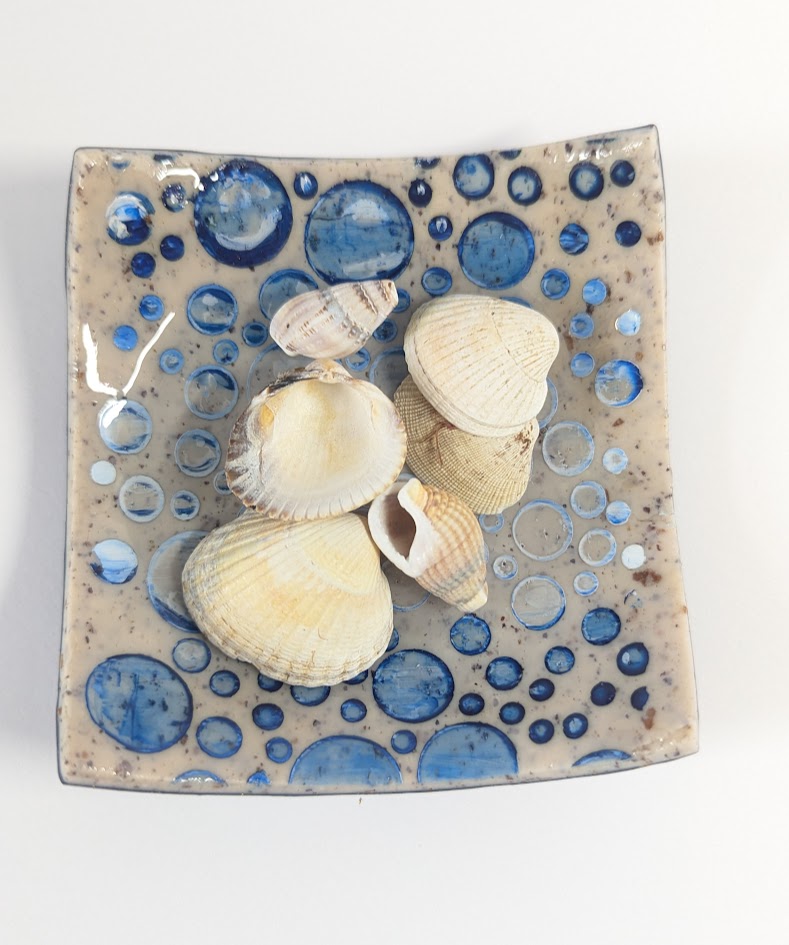 Beach Bubbles Trinket Dish - Sand coloured textured clay with a hand painted bubbles pattern (with the aid of a stencil) - trinket dish