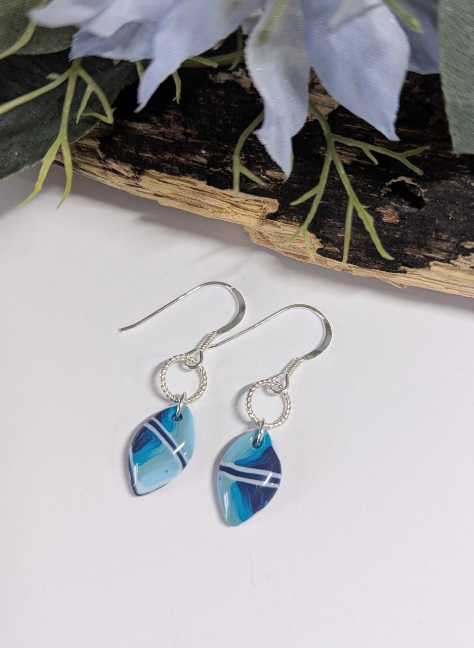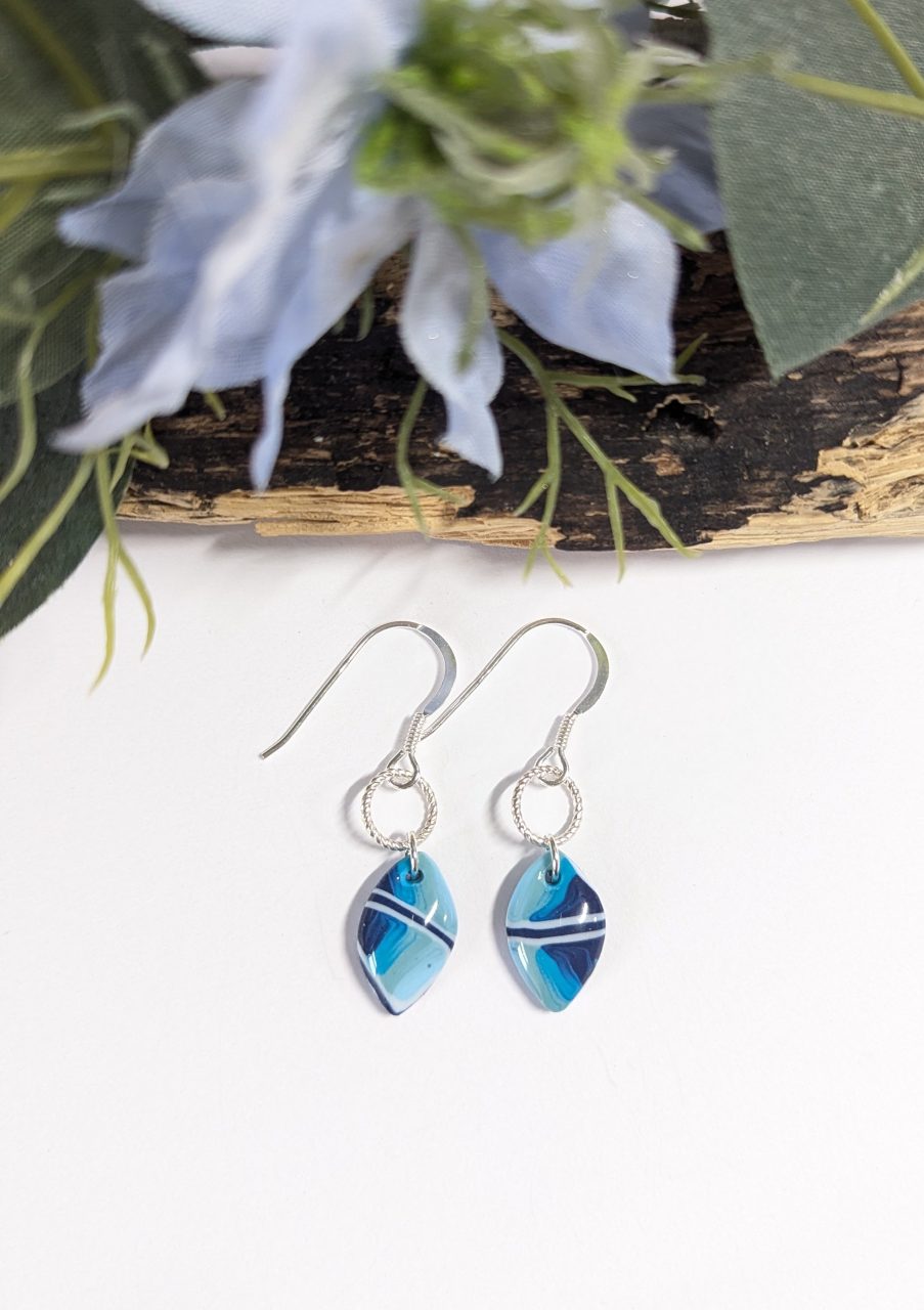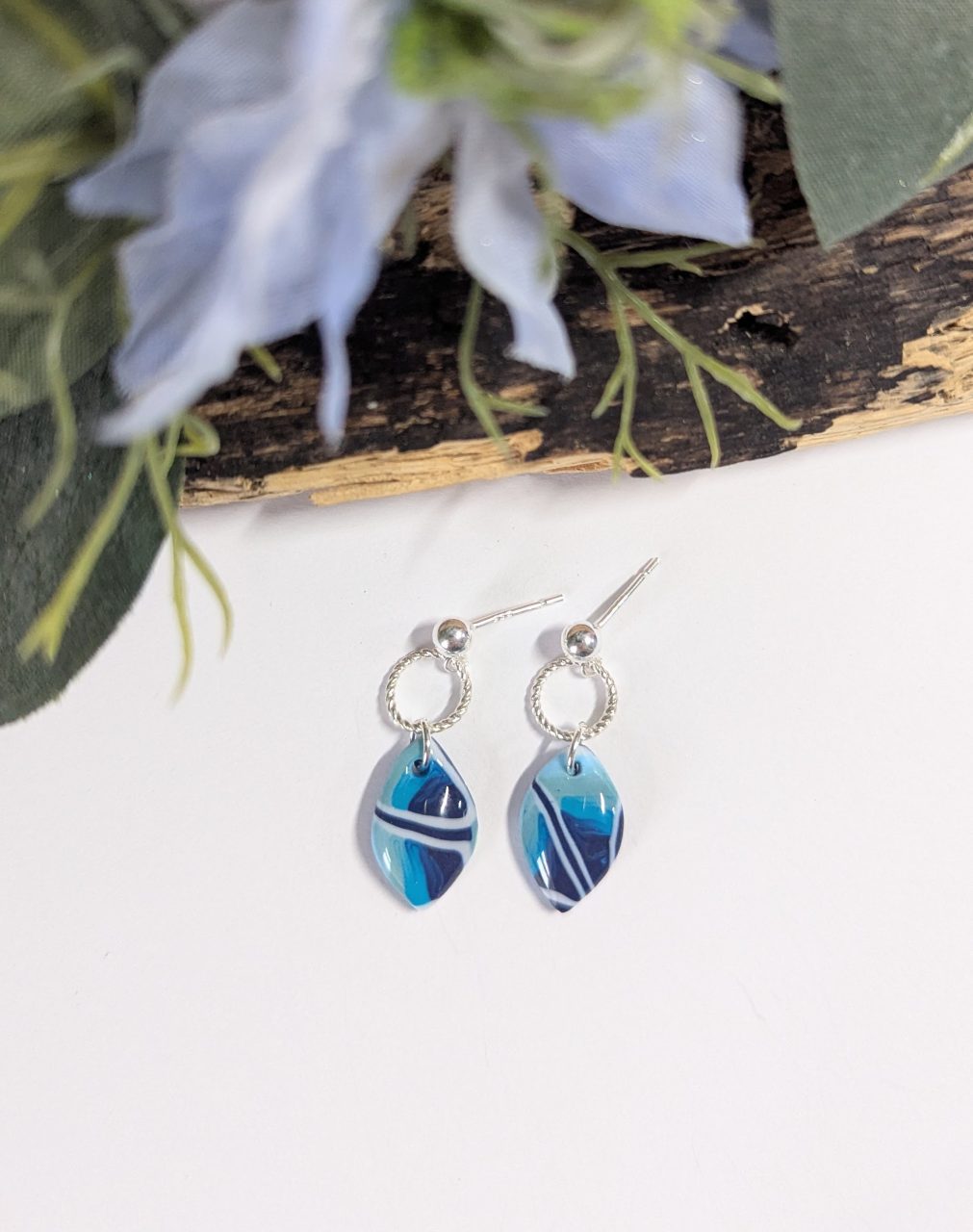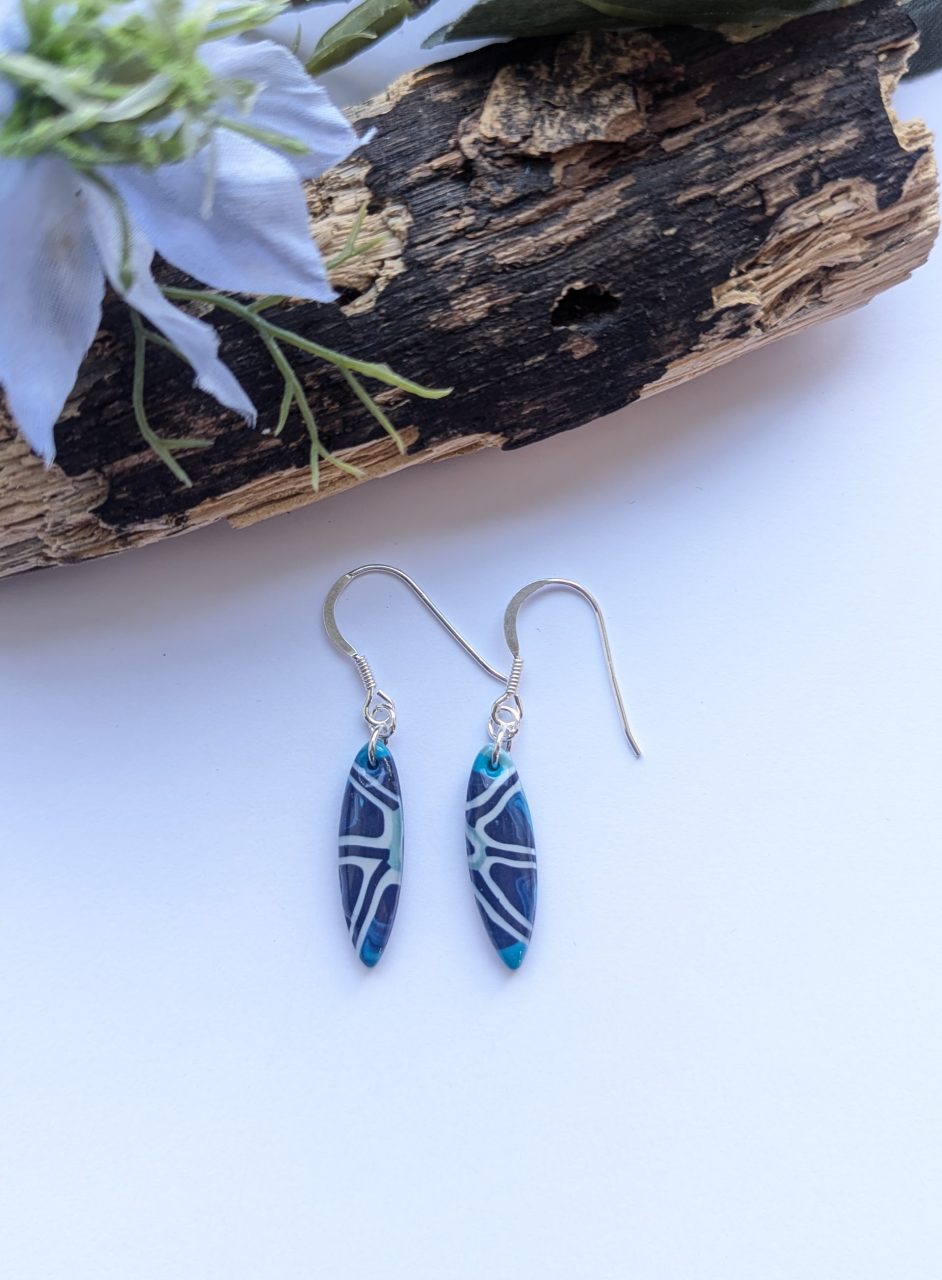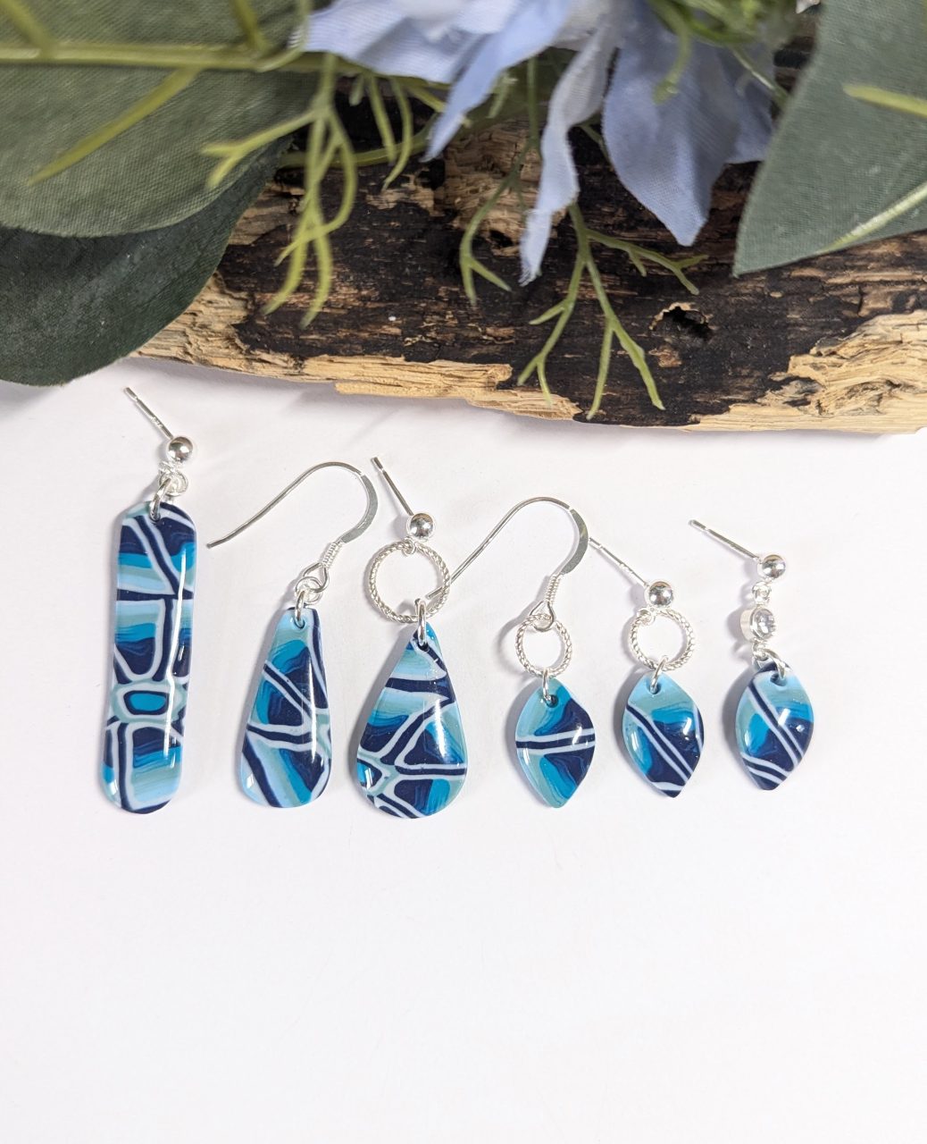 Blue Flower Earring Collection - Beautiful summer blue earrings created from a blue floral clay cane pattern.
