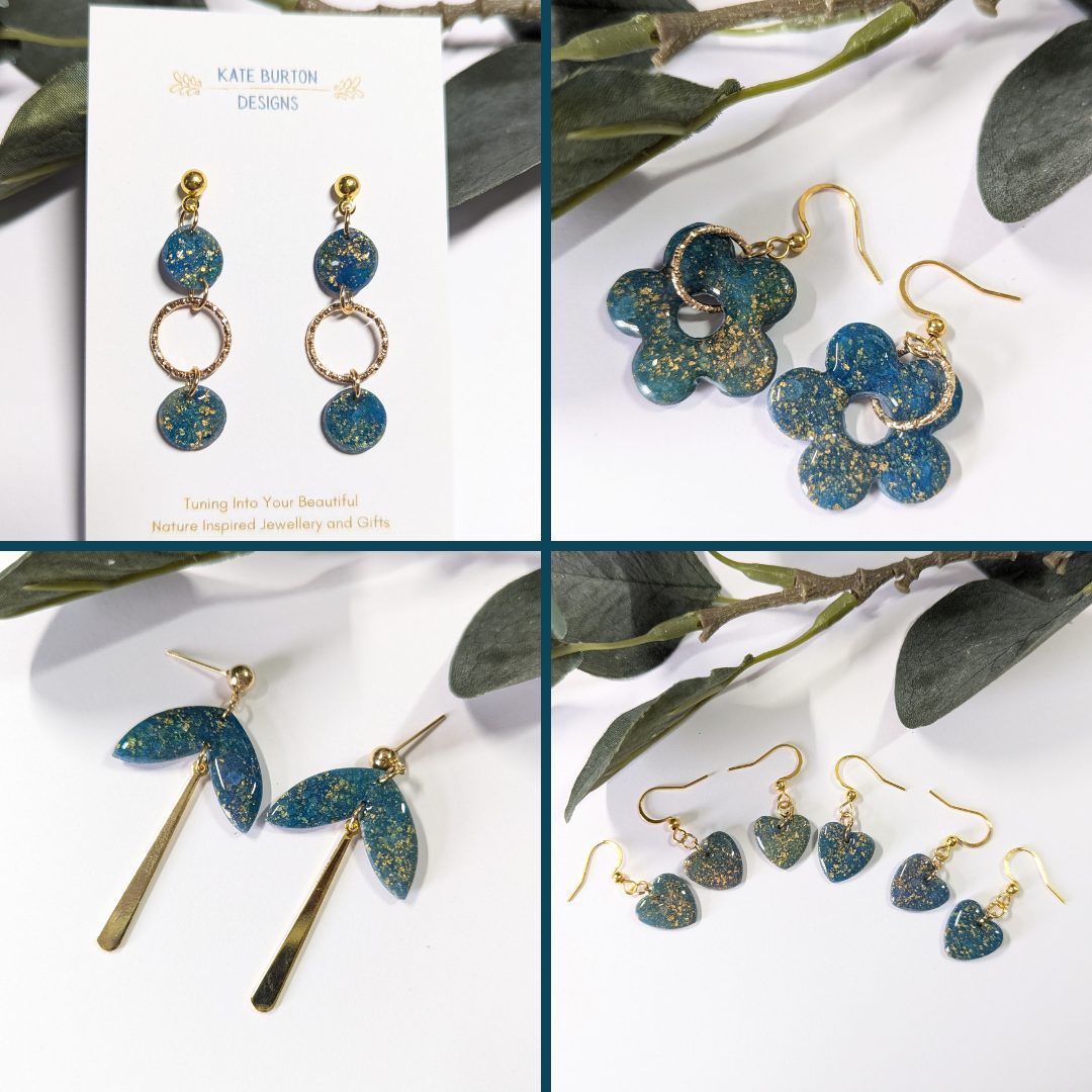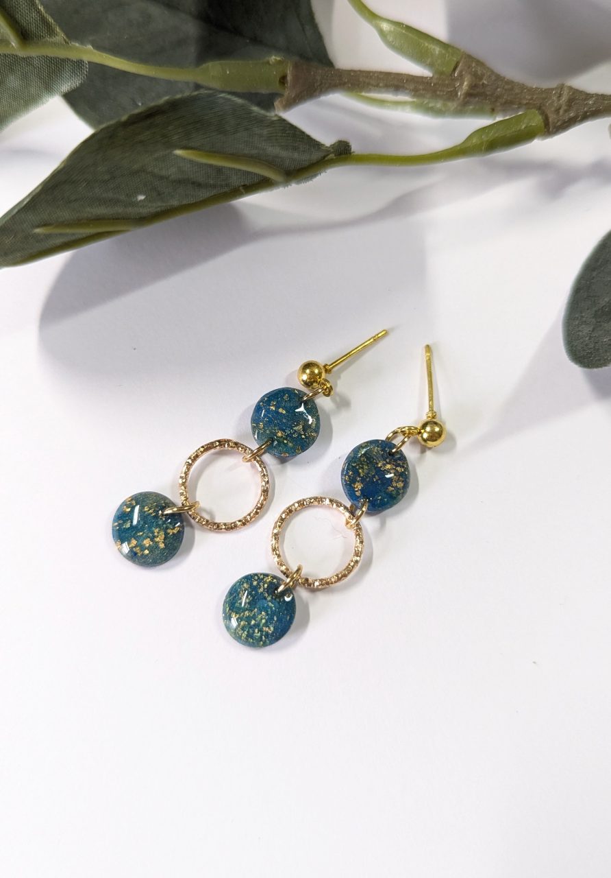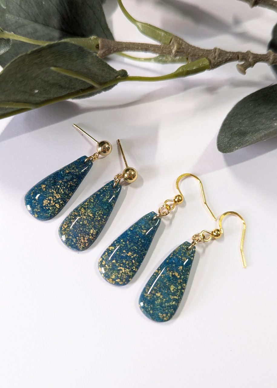 Dark Opals Collection - Beautiful opal like earrings collection - alcohol ink and gold leaf is added to the clay to create an opal effect.