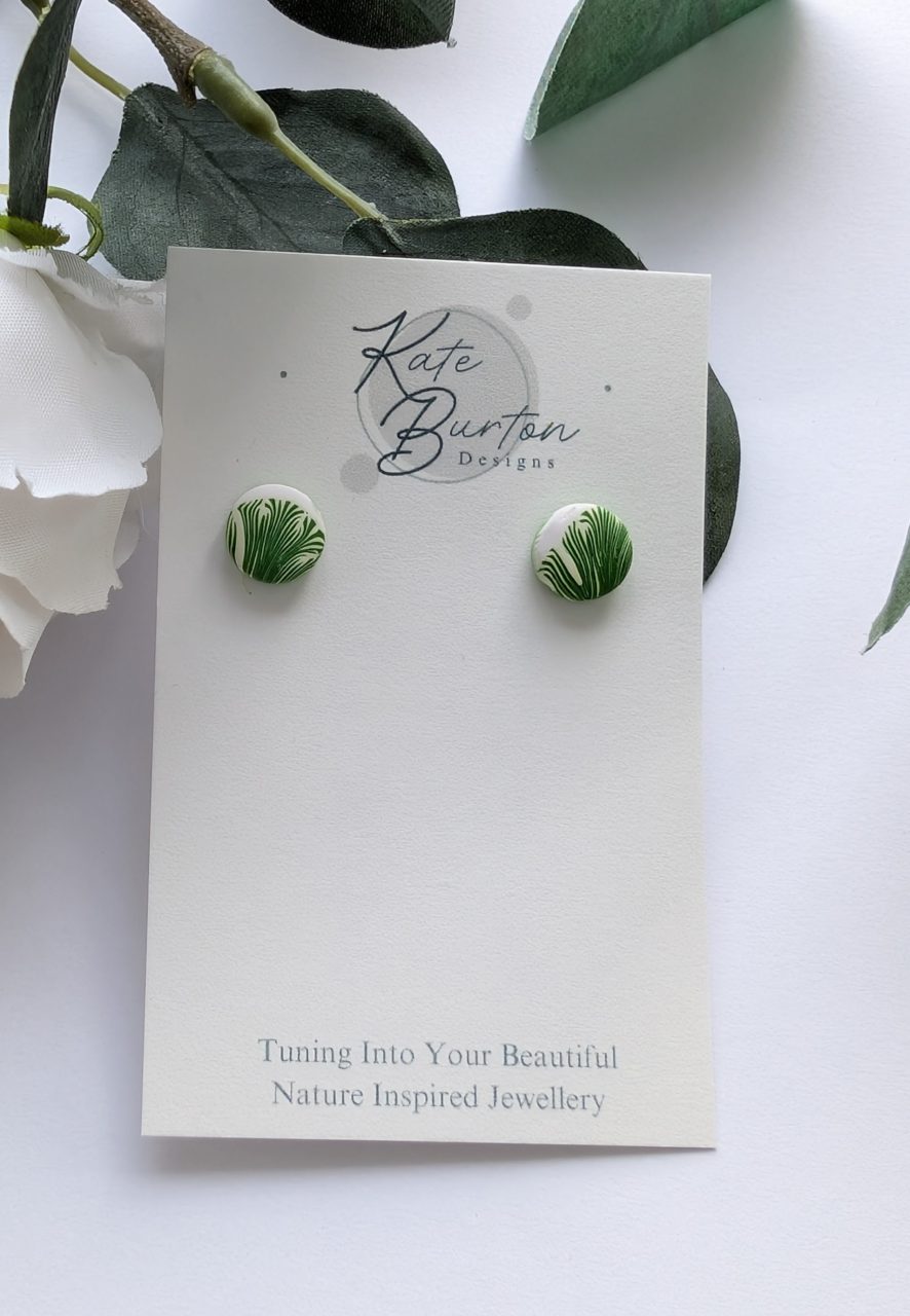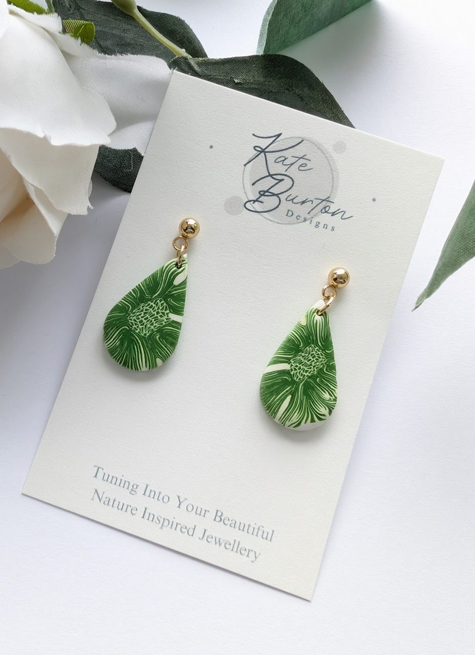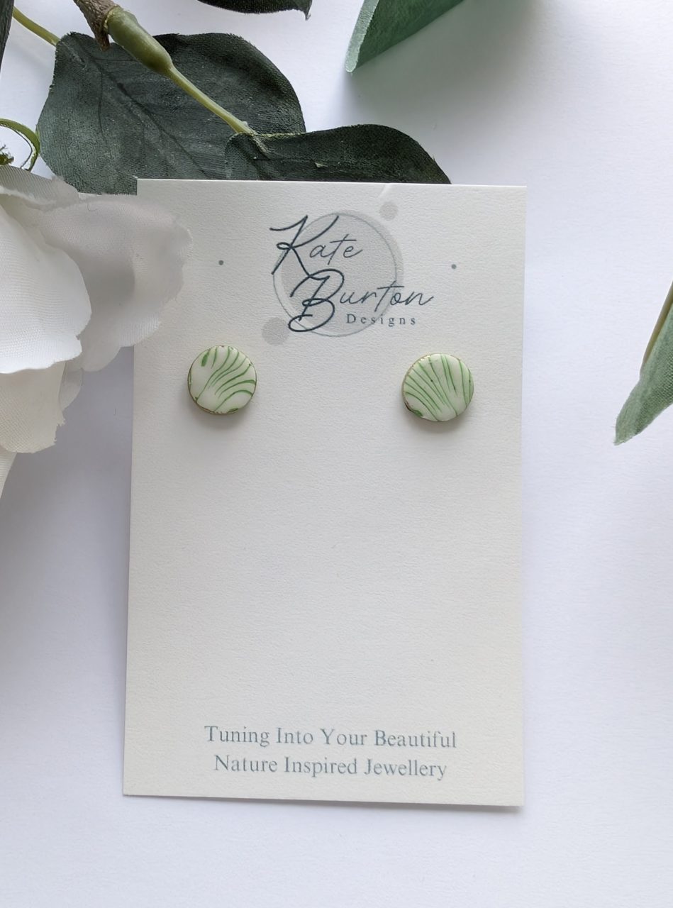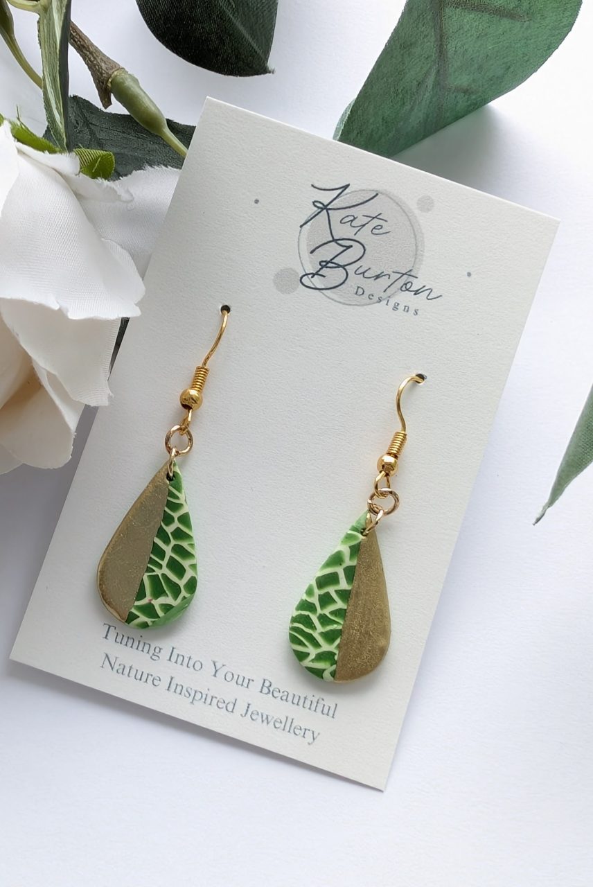 Beautiful Green, White and gold floral earrings - pattern created using various flower canes. Stunning Spring and Summer colours.