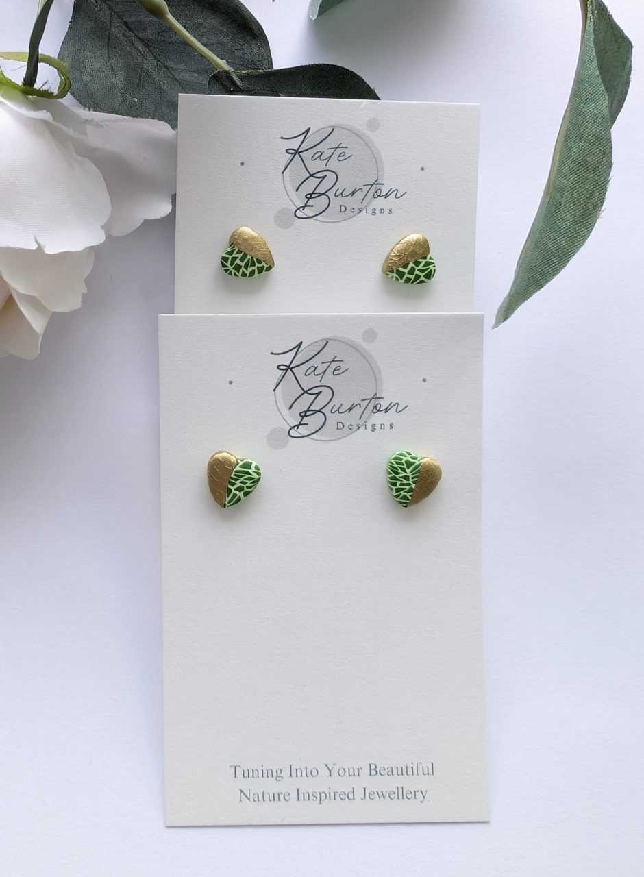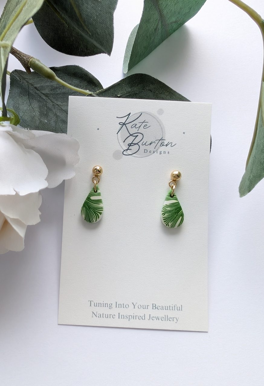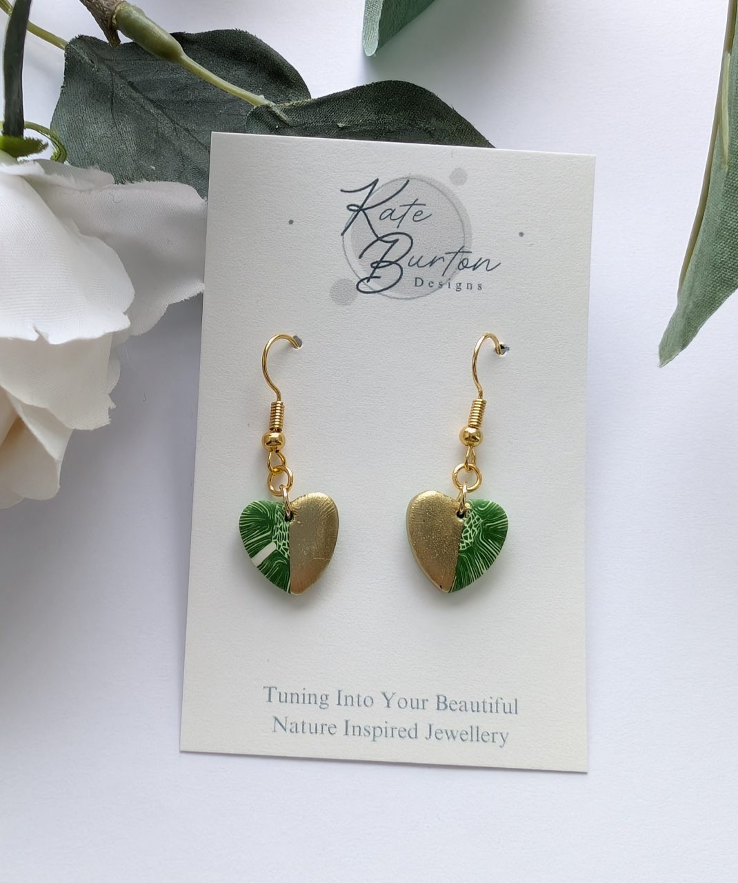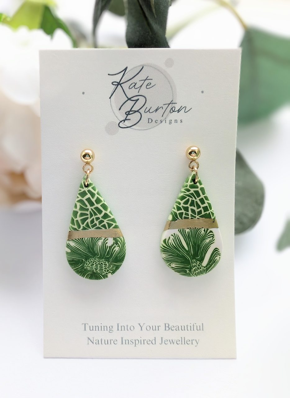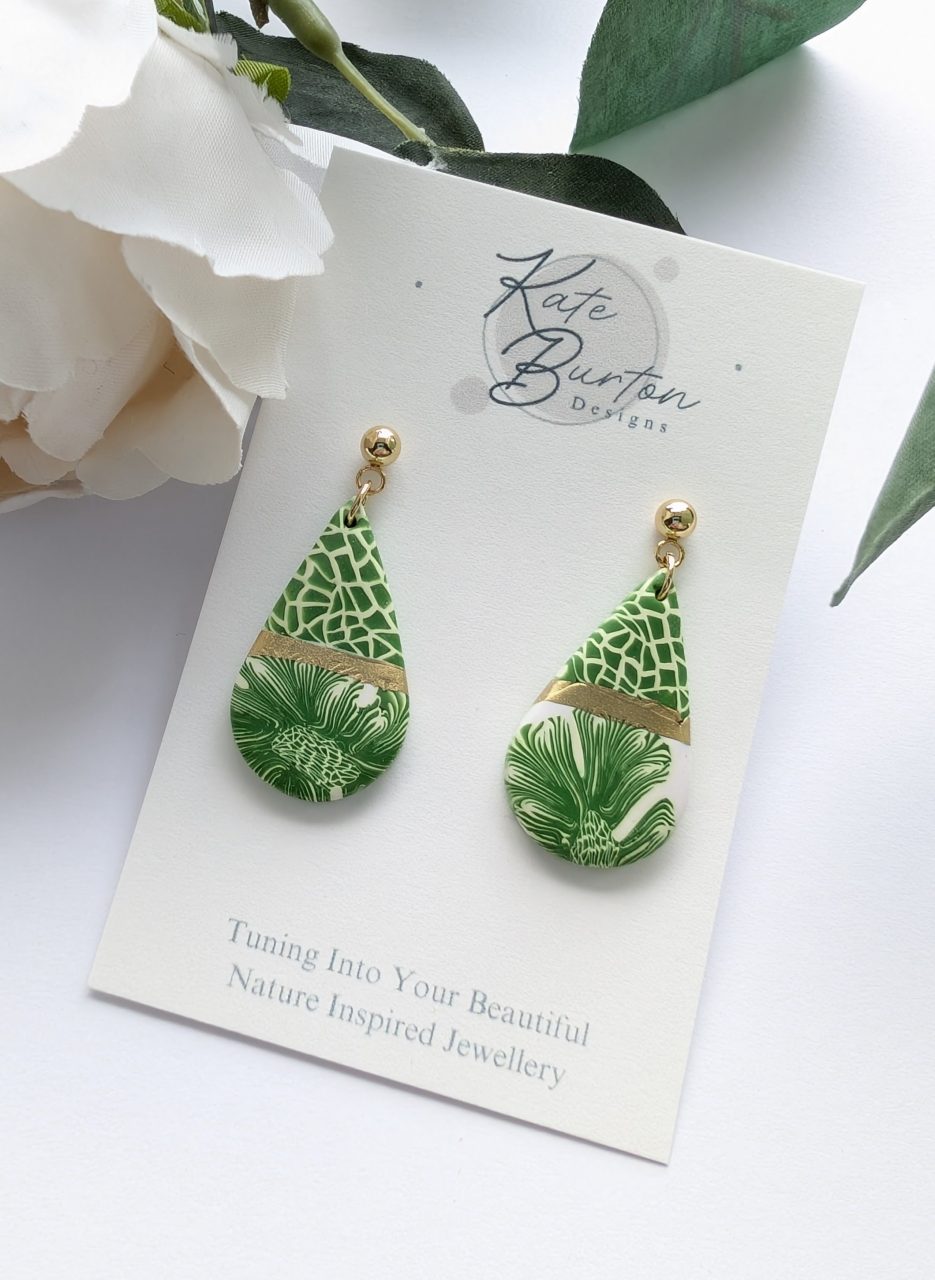 Beautiful Green, White and gold floral earrings - pattern created using various flower canes. Stunning Spring and Summer colours.