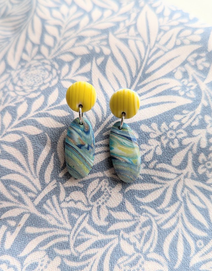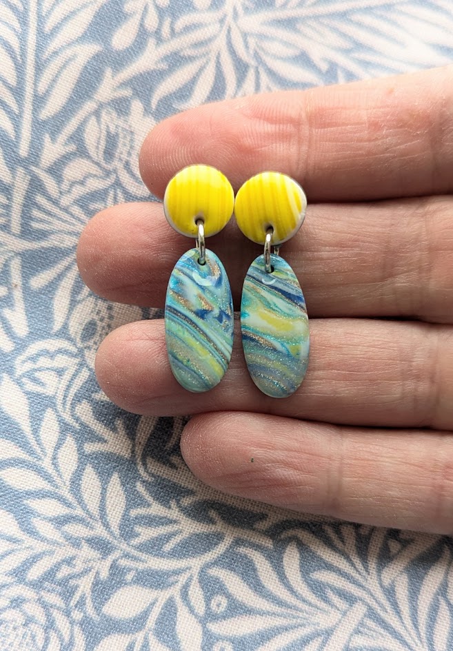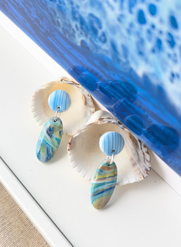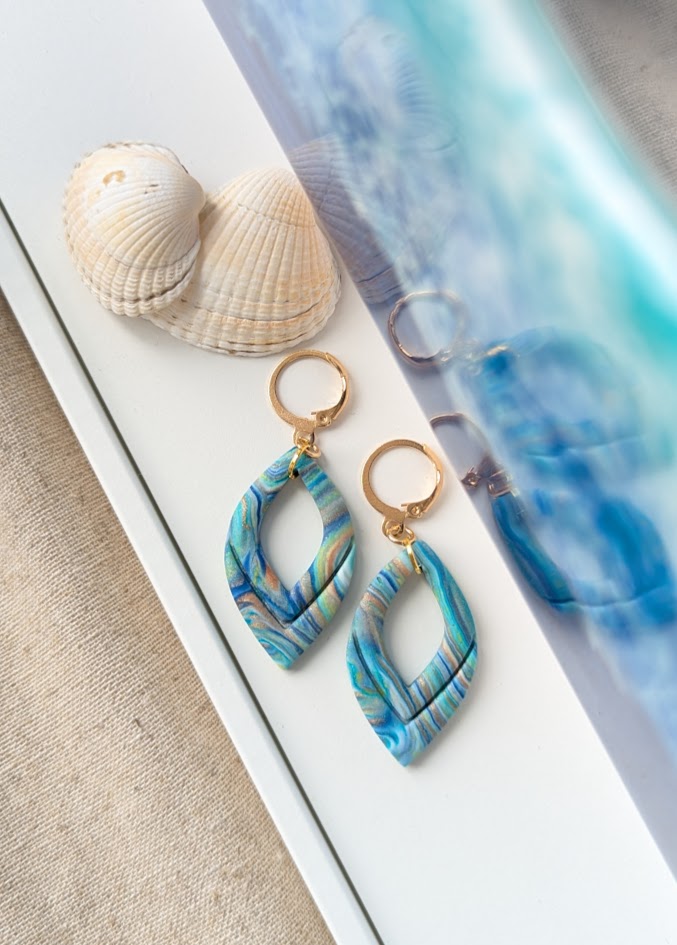 These earrings are versatile, durable and so lightweight. Perfect for any occasion, but with this colourway, they are a stunning accompaniment for those sparkly blue summer holidays you have booked.