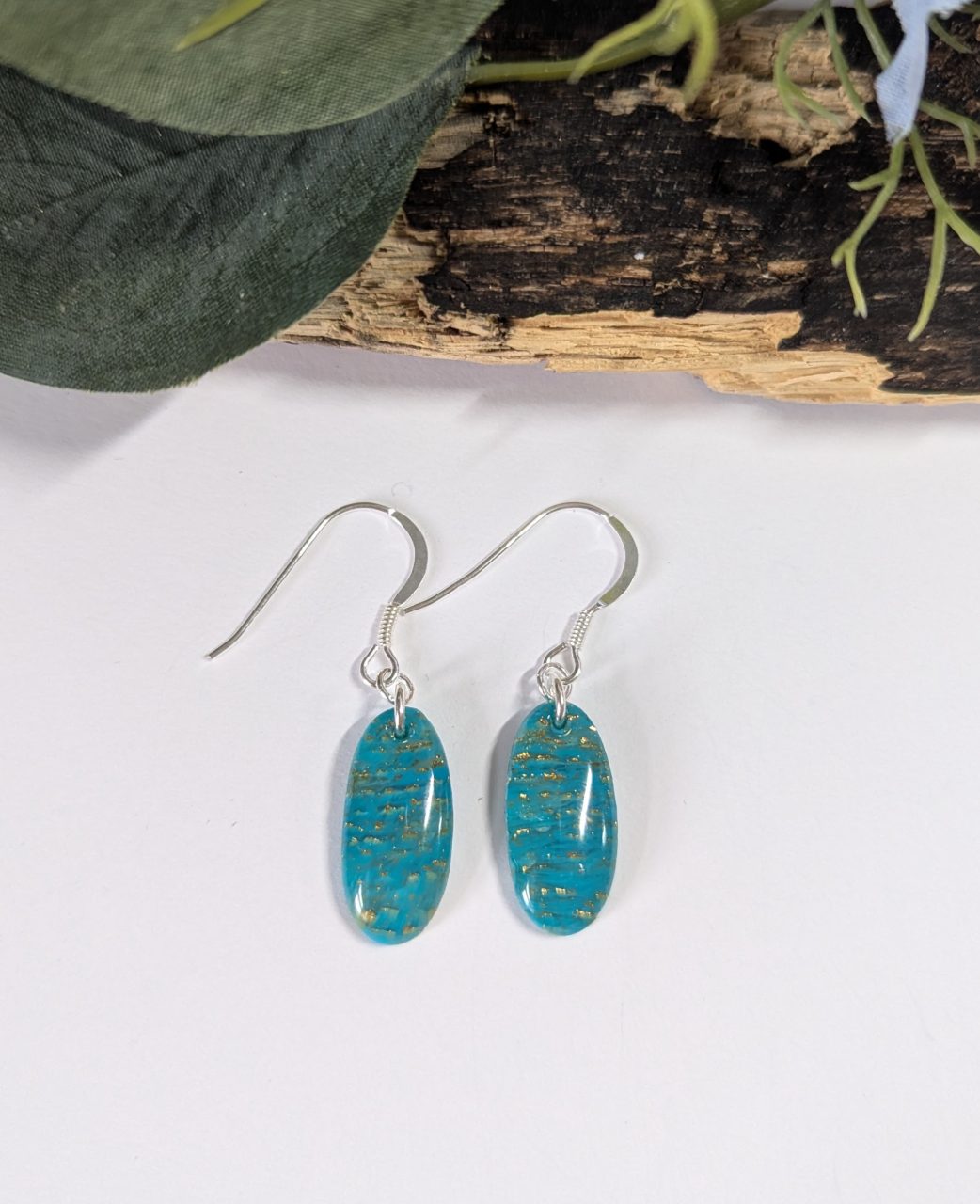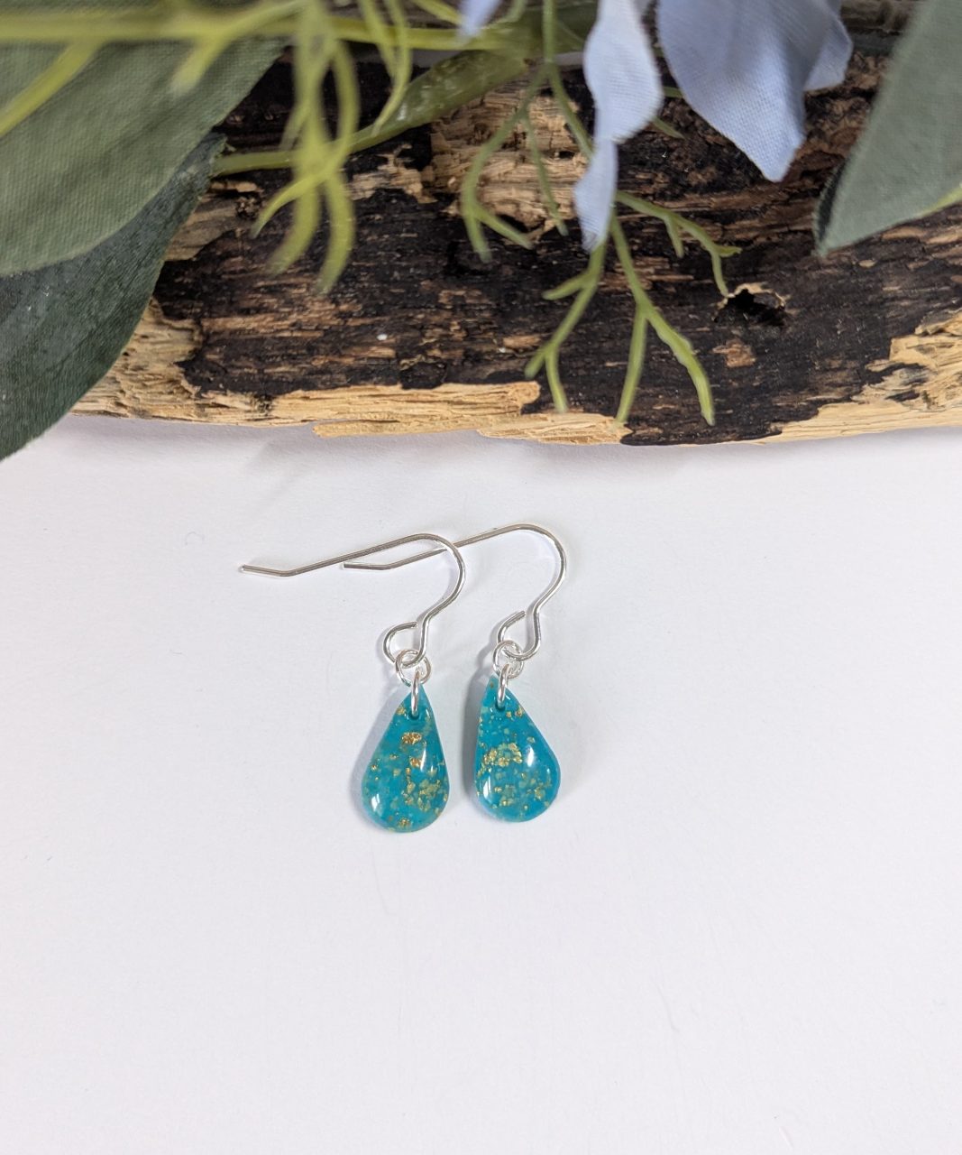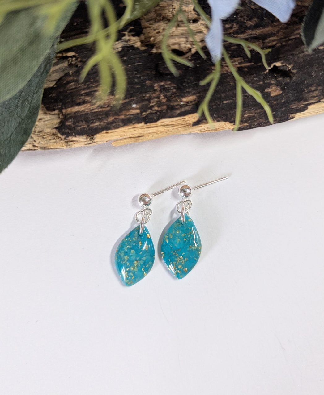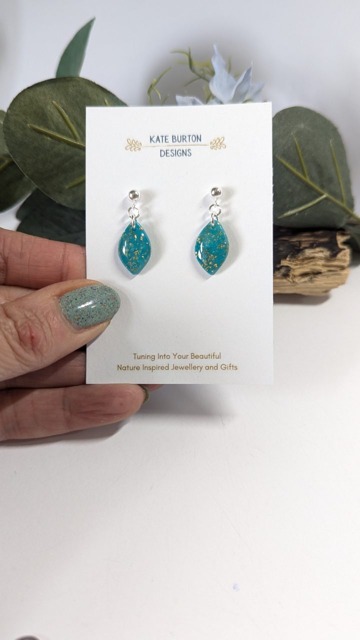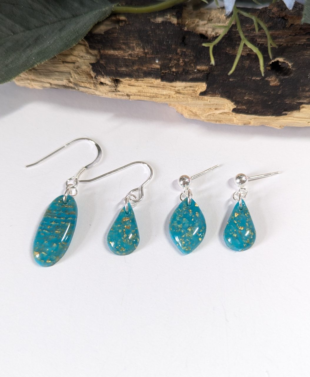 Into The Sea Silver Collection - Beautiful turquoise and gold earrings using layers of turquoise clay with gold leaf to create the sparkle of the Indian Ocean sea.