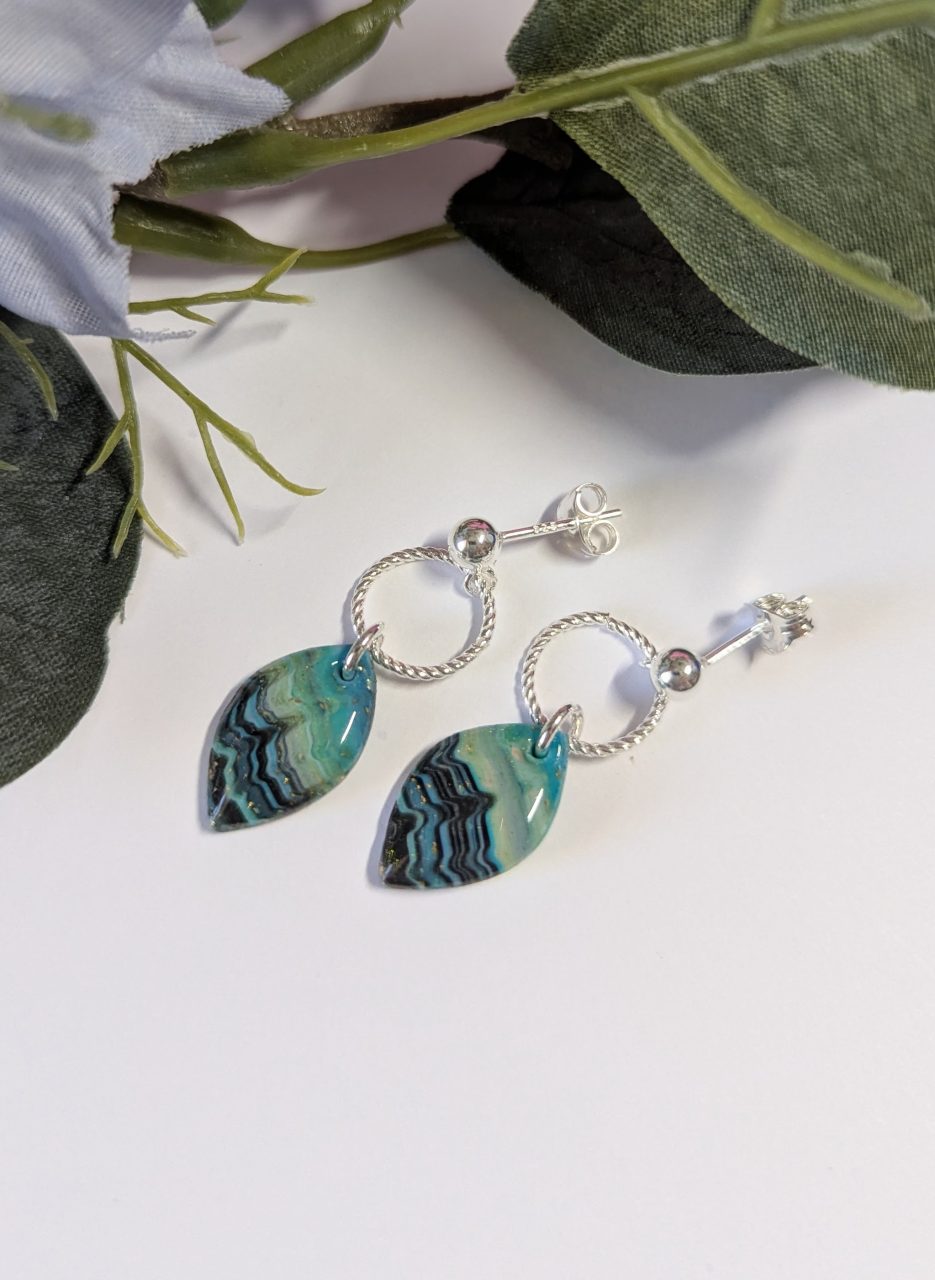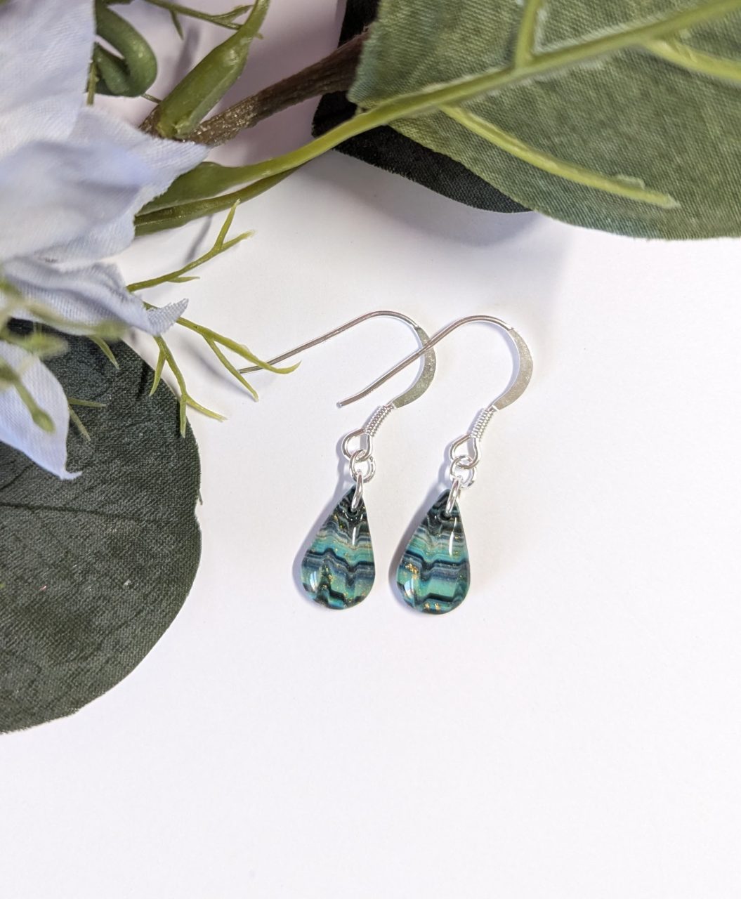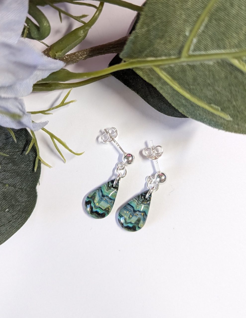 Ocean Waves collection Sterling Silver - beautiful mixed blues, greens and black clay using gold leaf for sparkle in a wavy pattern.