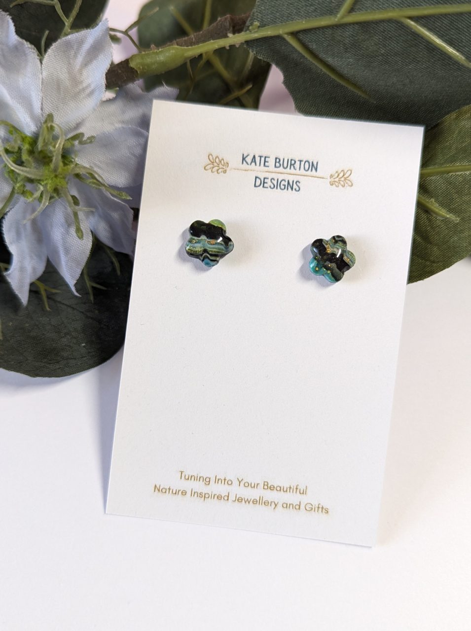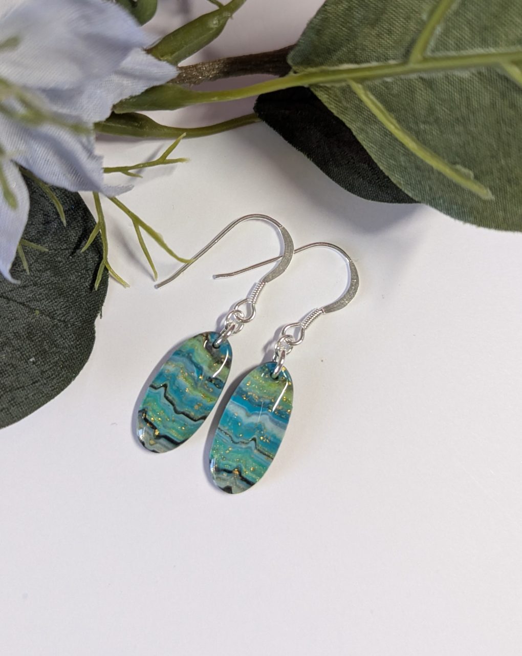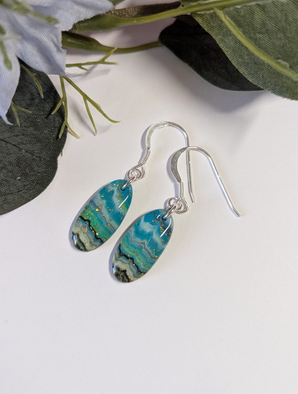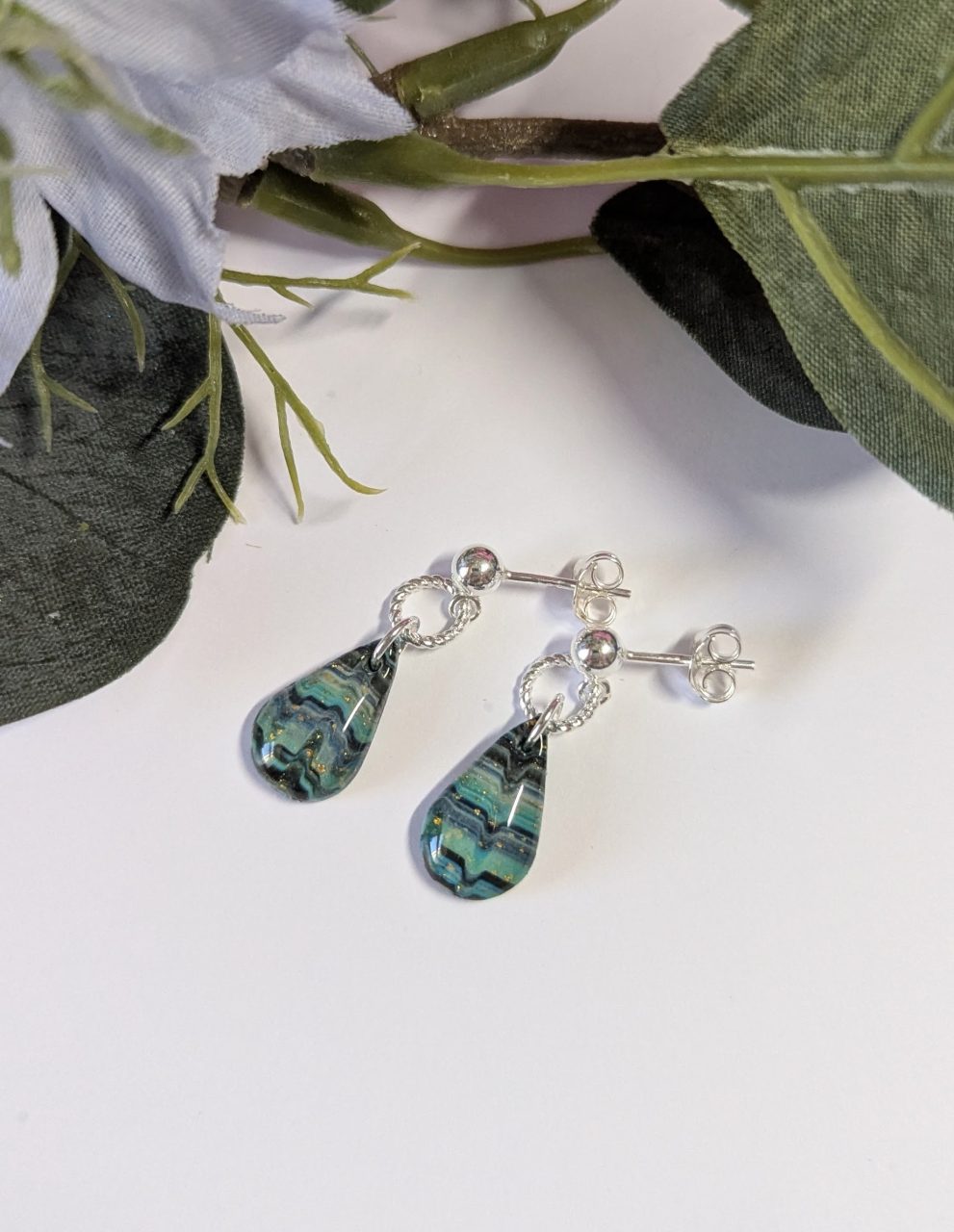 Ocean Waves collection Sterling Silver - beautiful mixed blues, greens and black clay using gold leaf for sparkle in a wavy pattern.