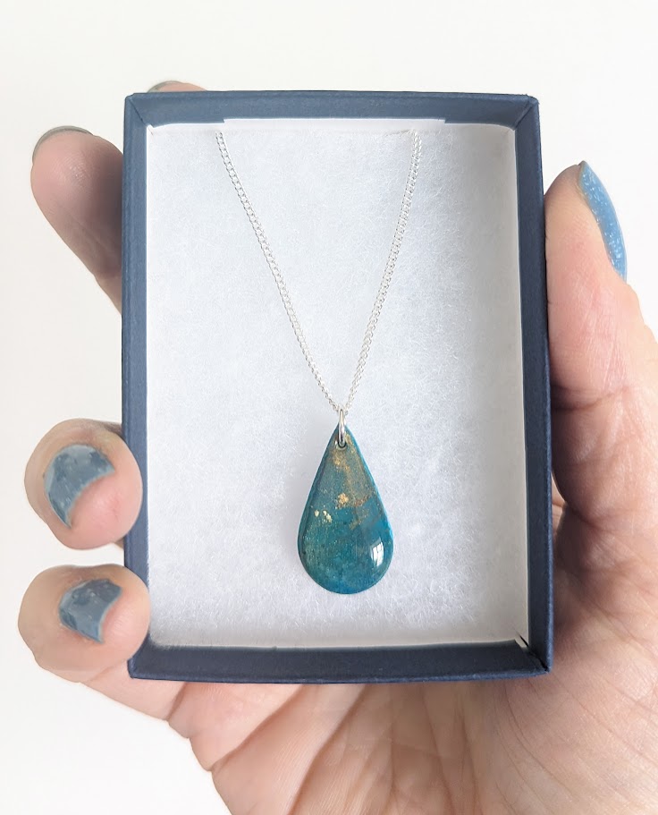 Opals Teardrop Necklace - Beautiful Opal blue colour necklace - the chain is sterling silver- subtle style.