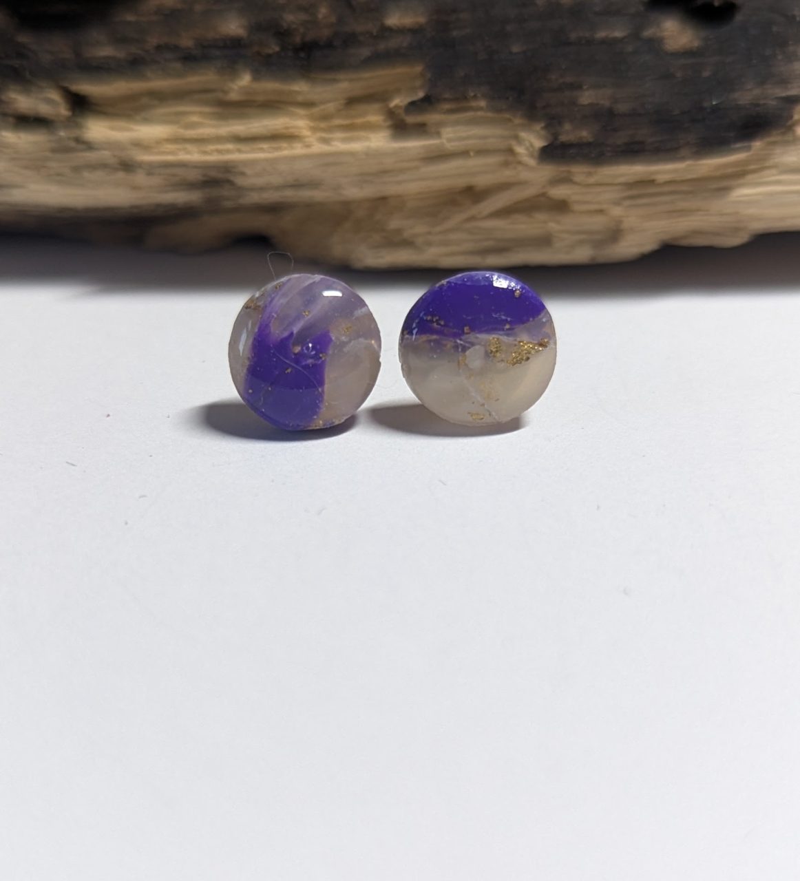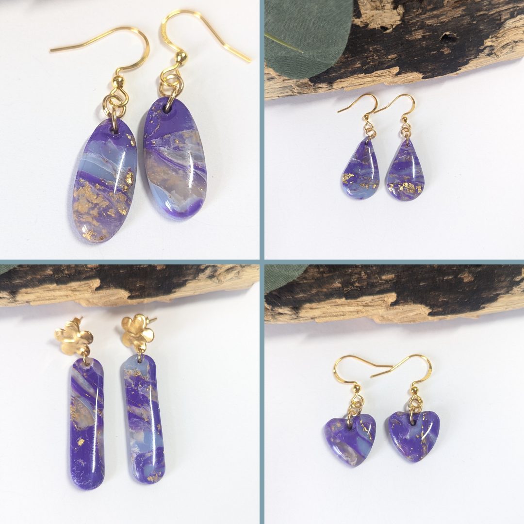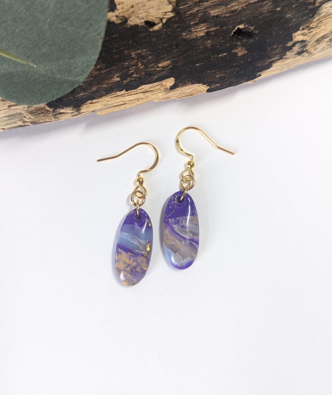 Purple Marble Effect Earrings - Beautiful purple mix clay, translucent clay earrings with gold leaf mixed in to create the marble effect.