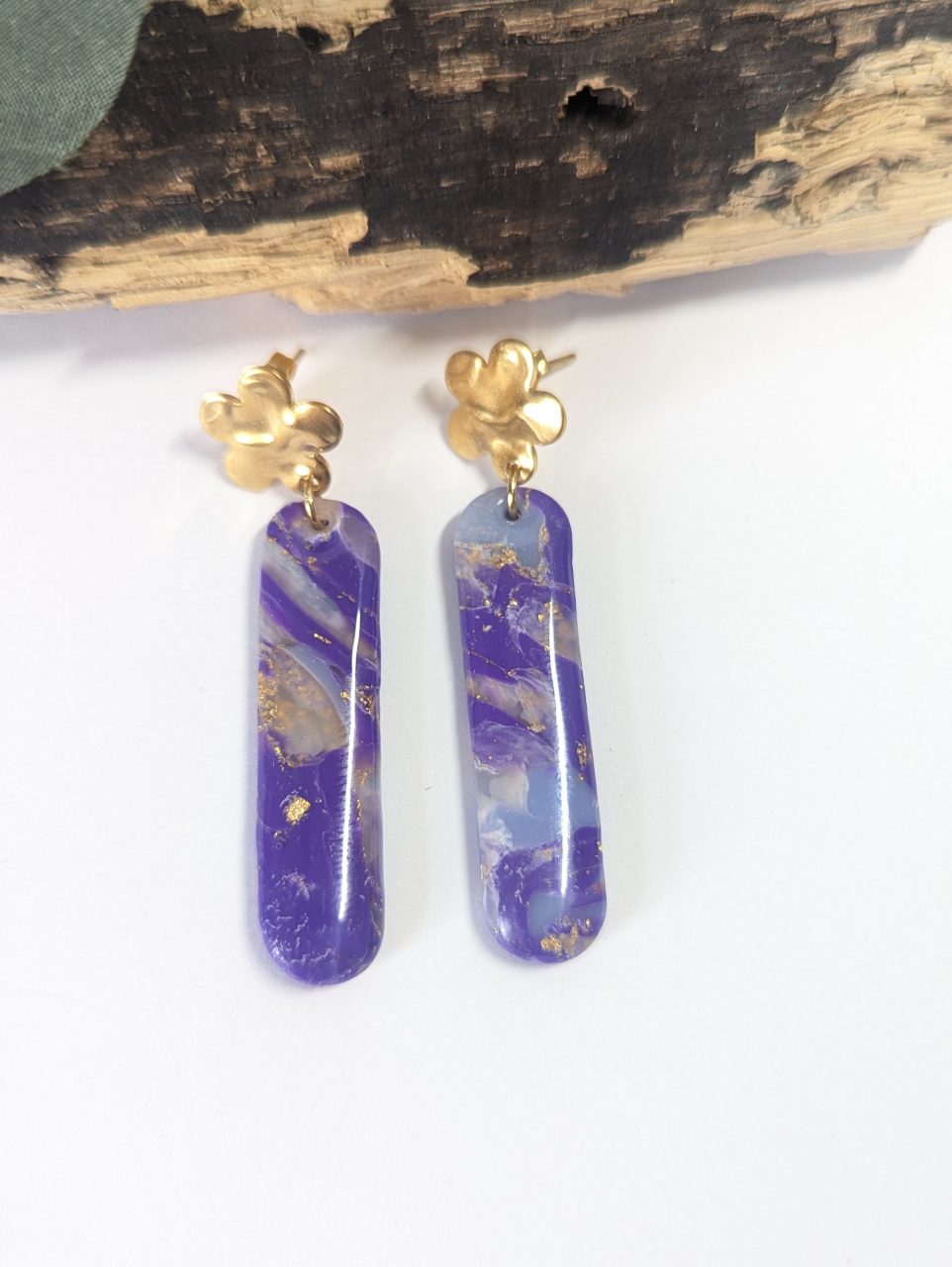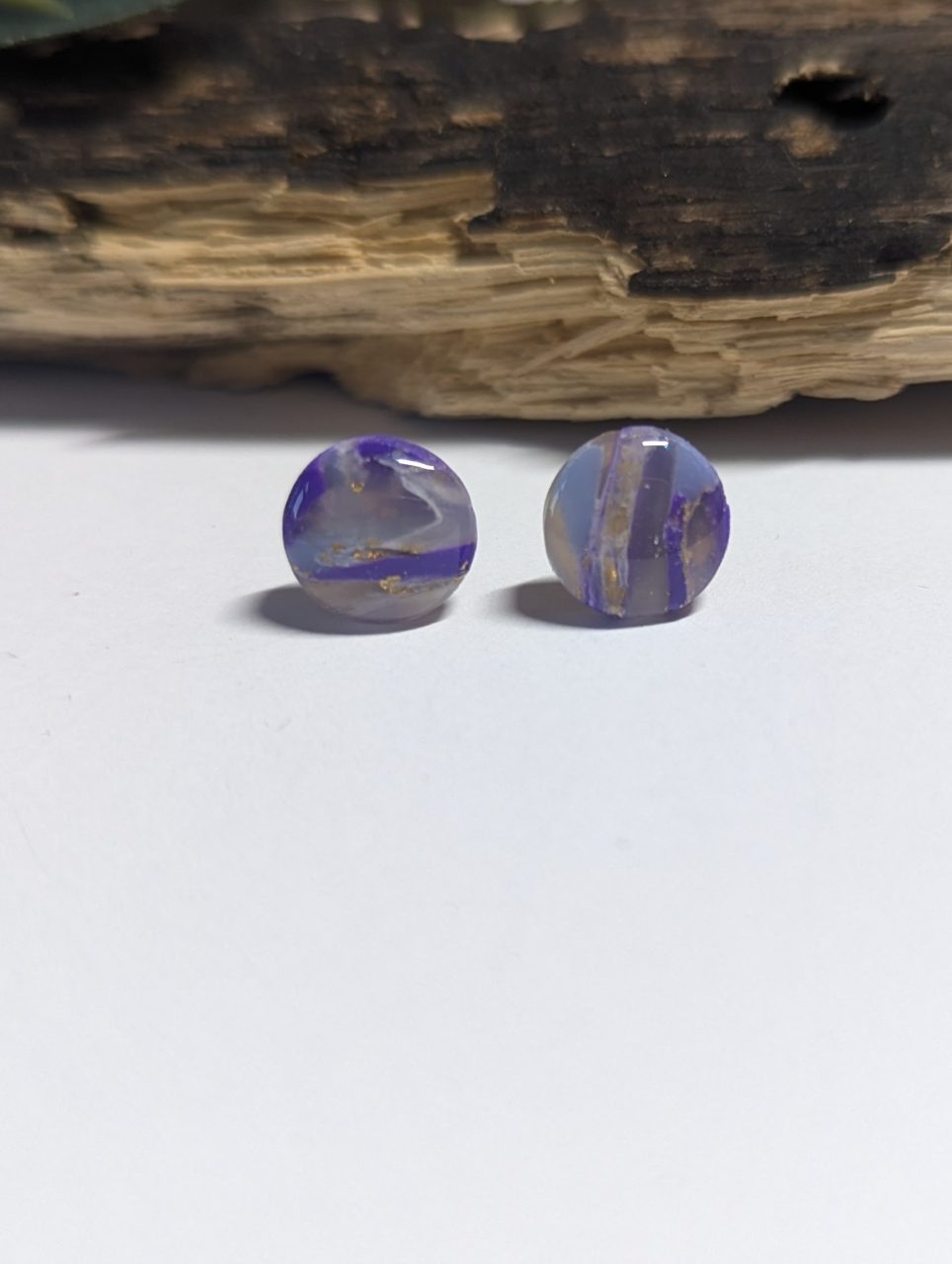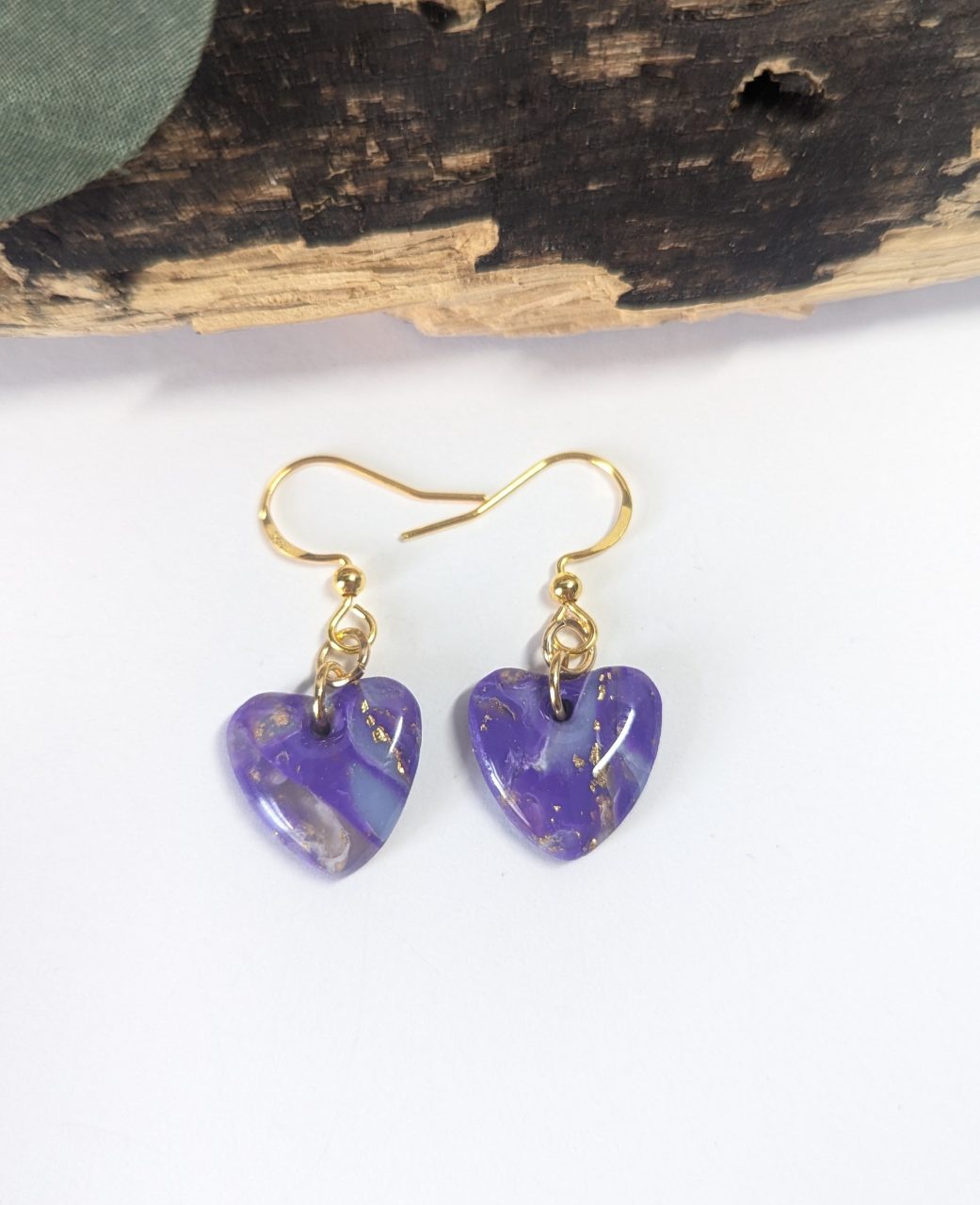 Purple Marble Effect Earrings - Beautiful purple mix clay, translucent clay earrings with gold leaf mixed in to create the marble effect.