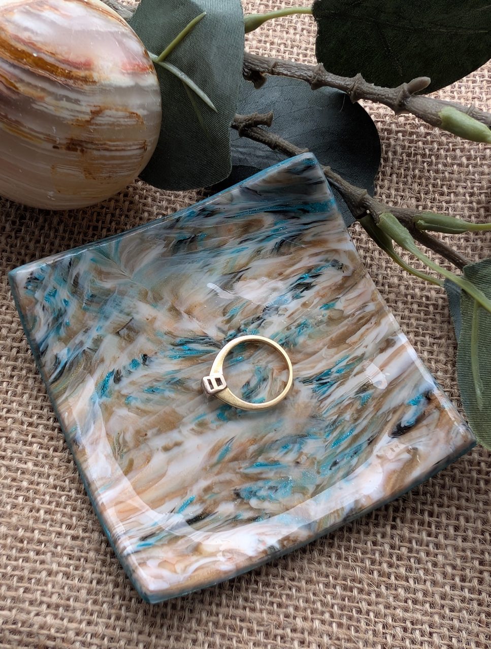 Sand and Sea Trinket Dish - A beautiful neutral and blue mix square trinket dish.