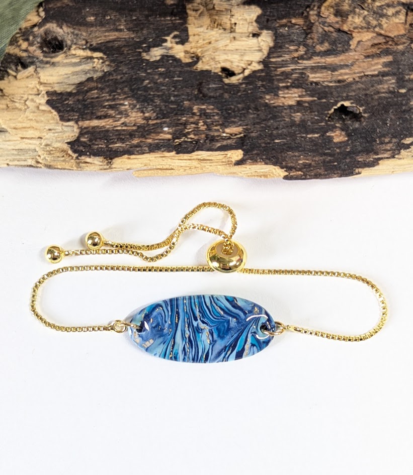 Sparkly Seas Bracelet - Beautiful summer blue sparkly seas effect adjustable bracelet.