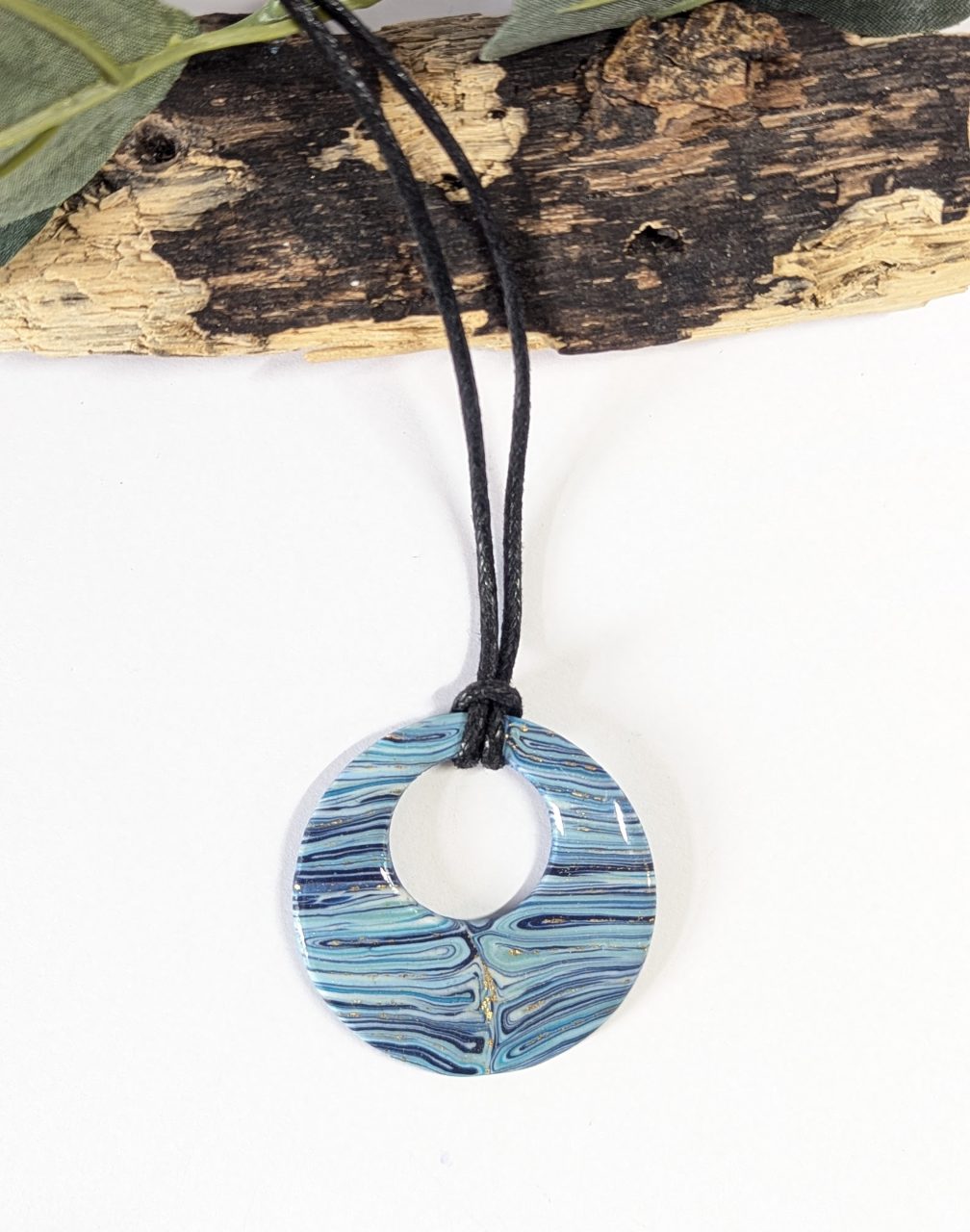 Sparkly Seas Doughnut Pendants - Beautiful summer blue sparkly seas effect corded pendants.