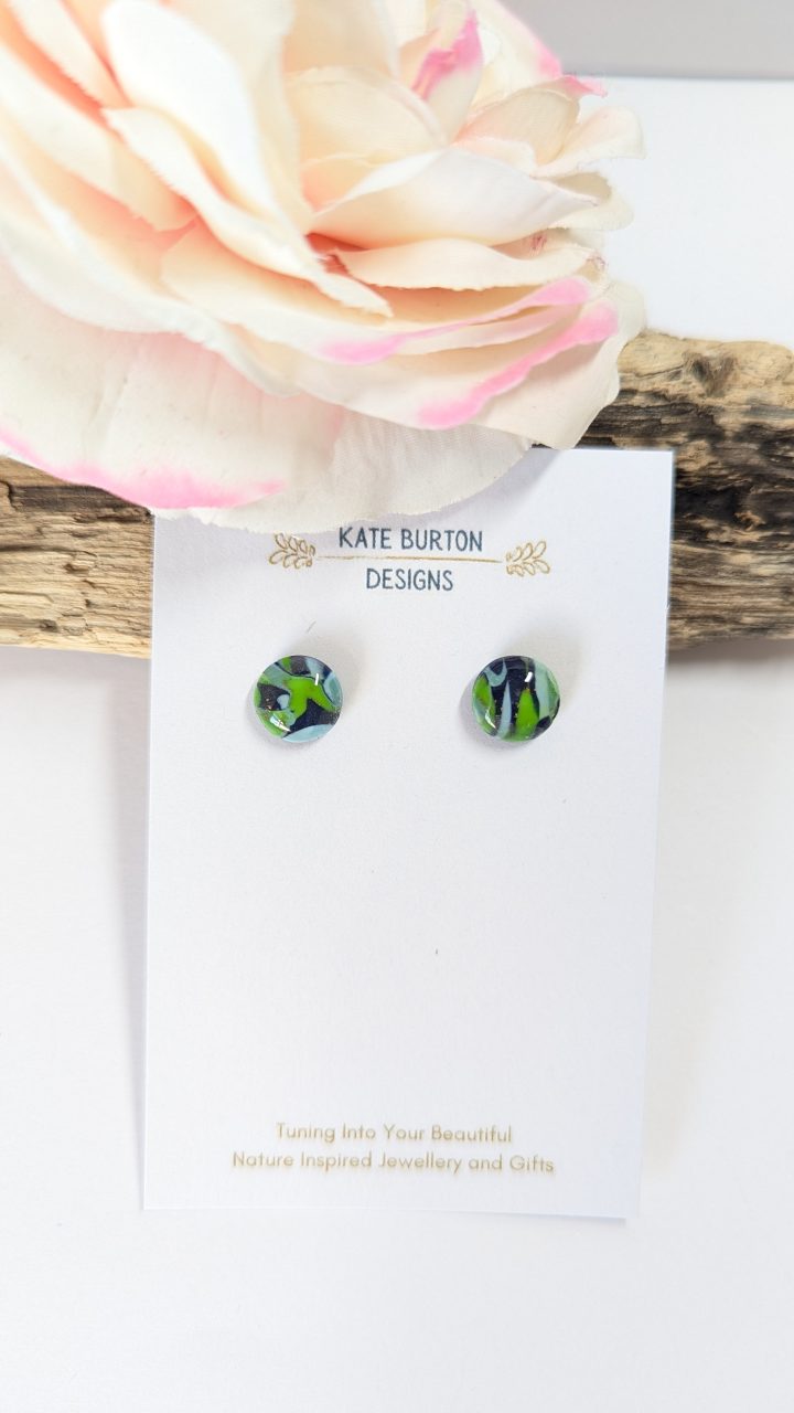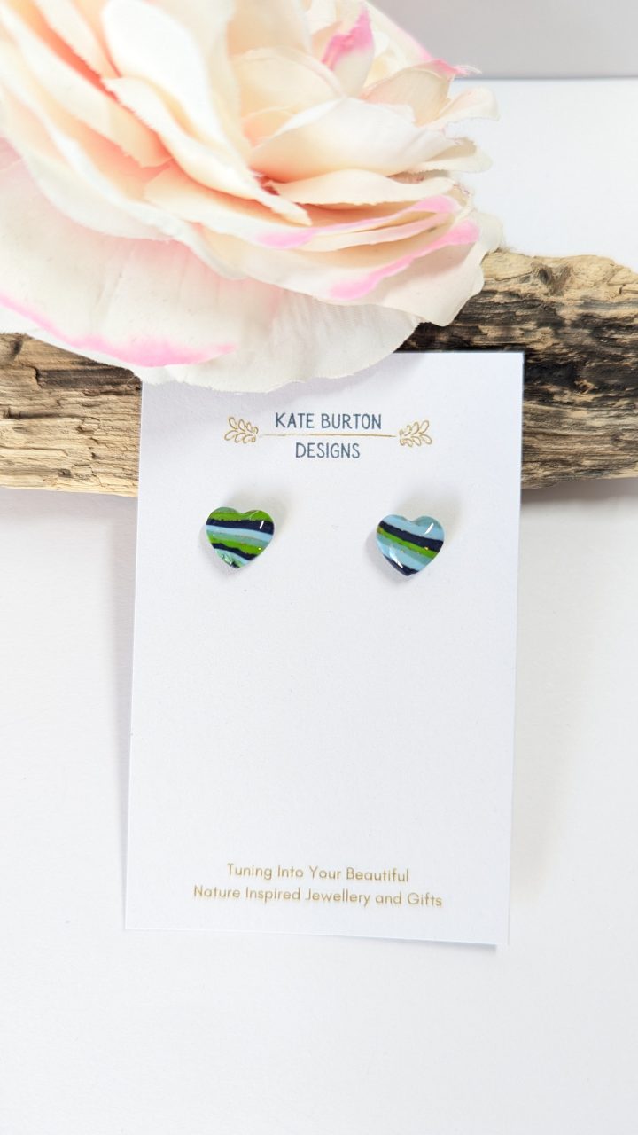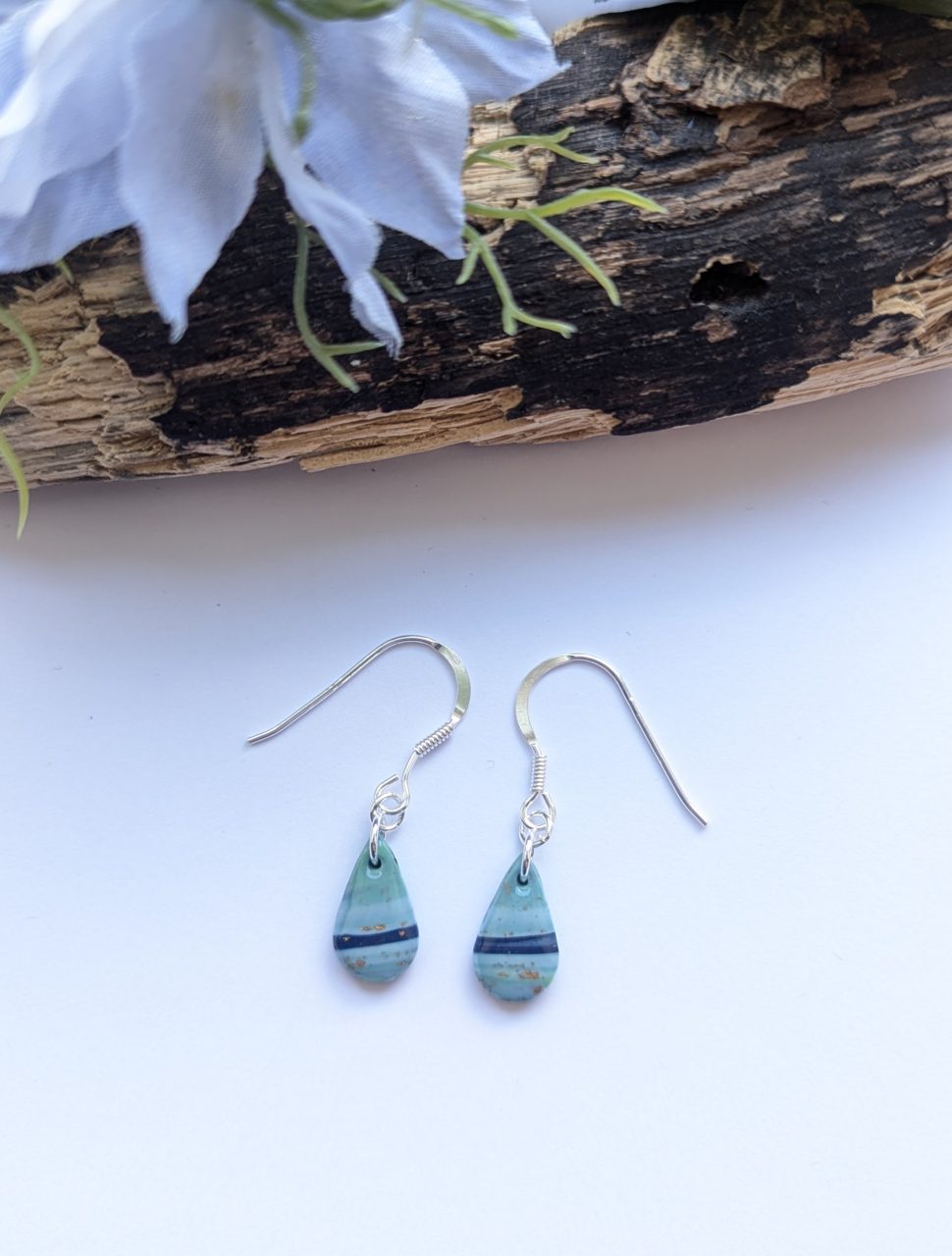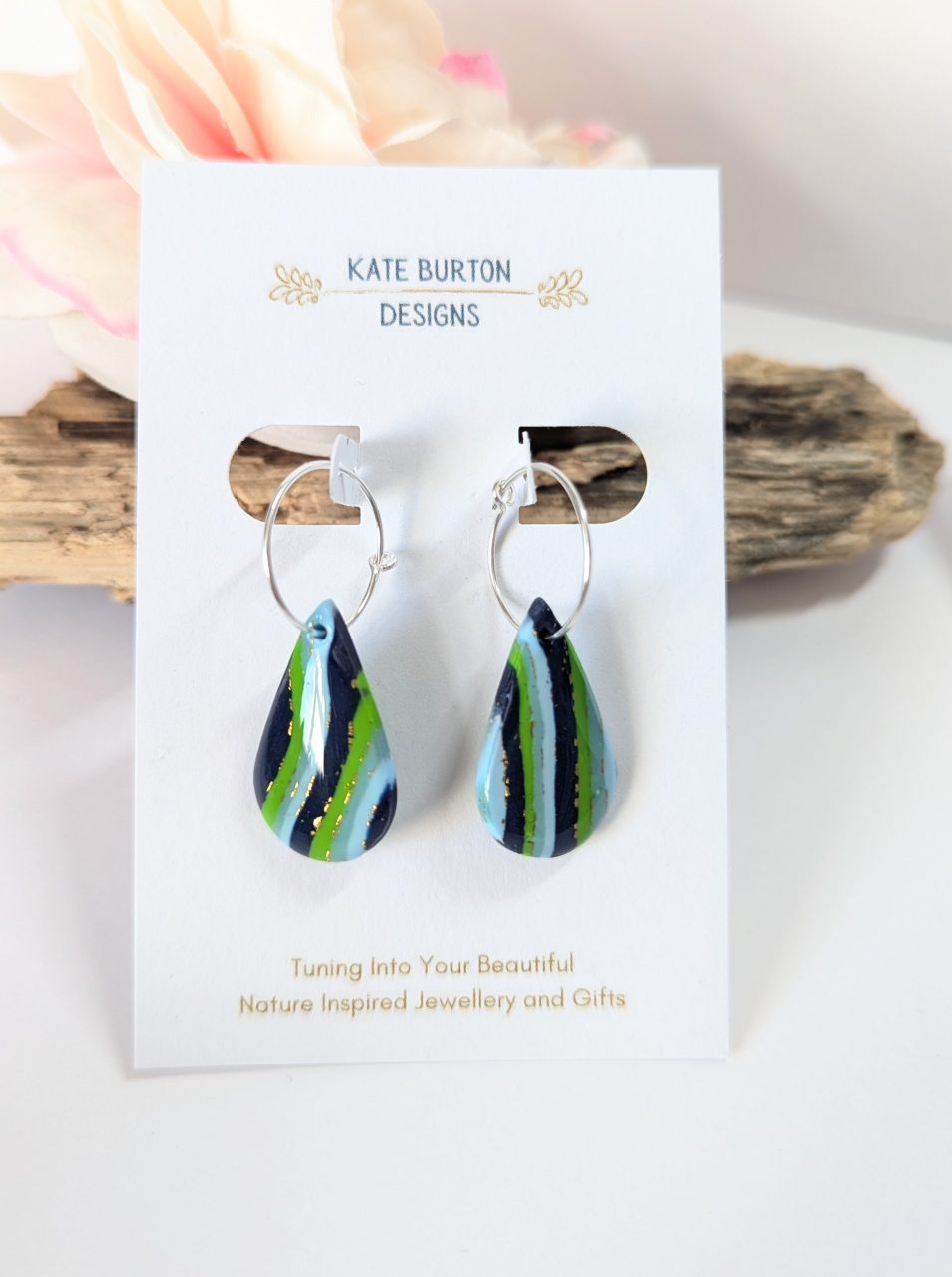 Stripes Sterling Silver Earring Collection - Beautiful blues and greens stripes pattern earrings with gold leaf layers. Colours of nature.