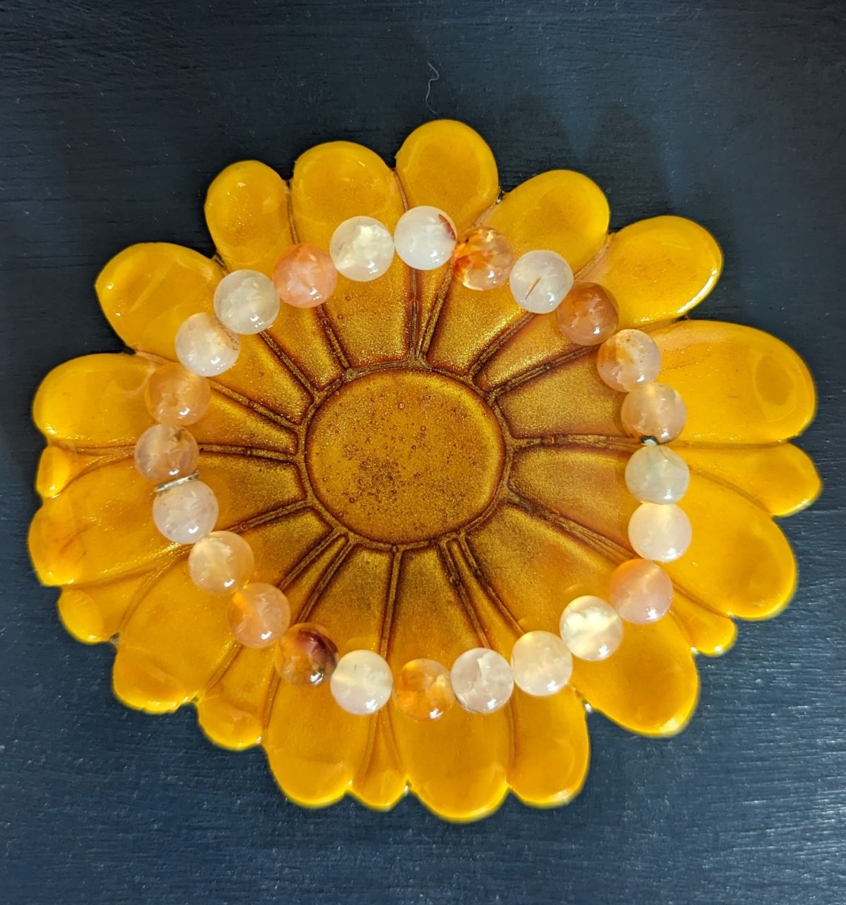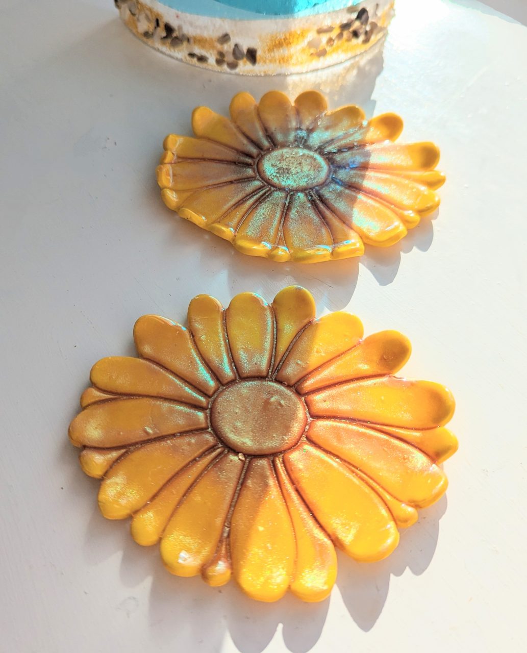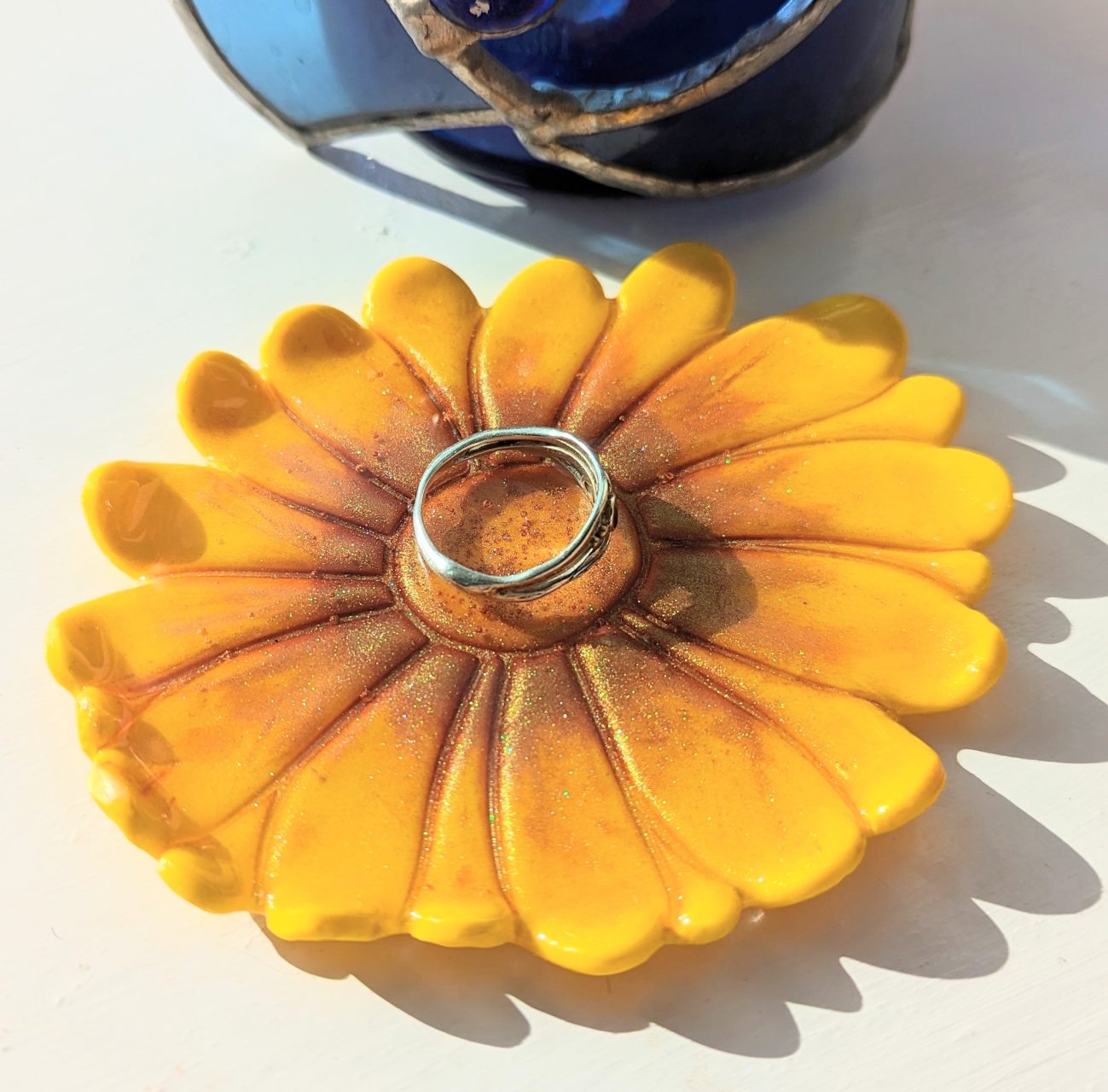Sunflower Trinket Dish - large sunflower shape trinket dish with bronze shimmery touches. Summer in a dish!