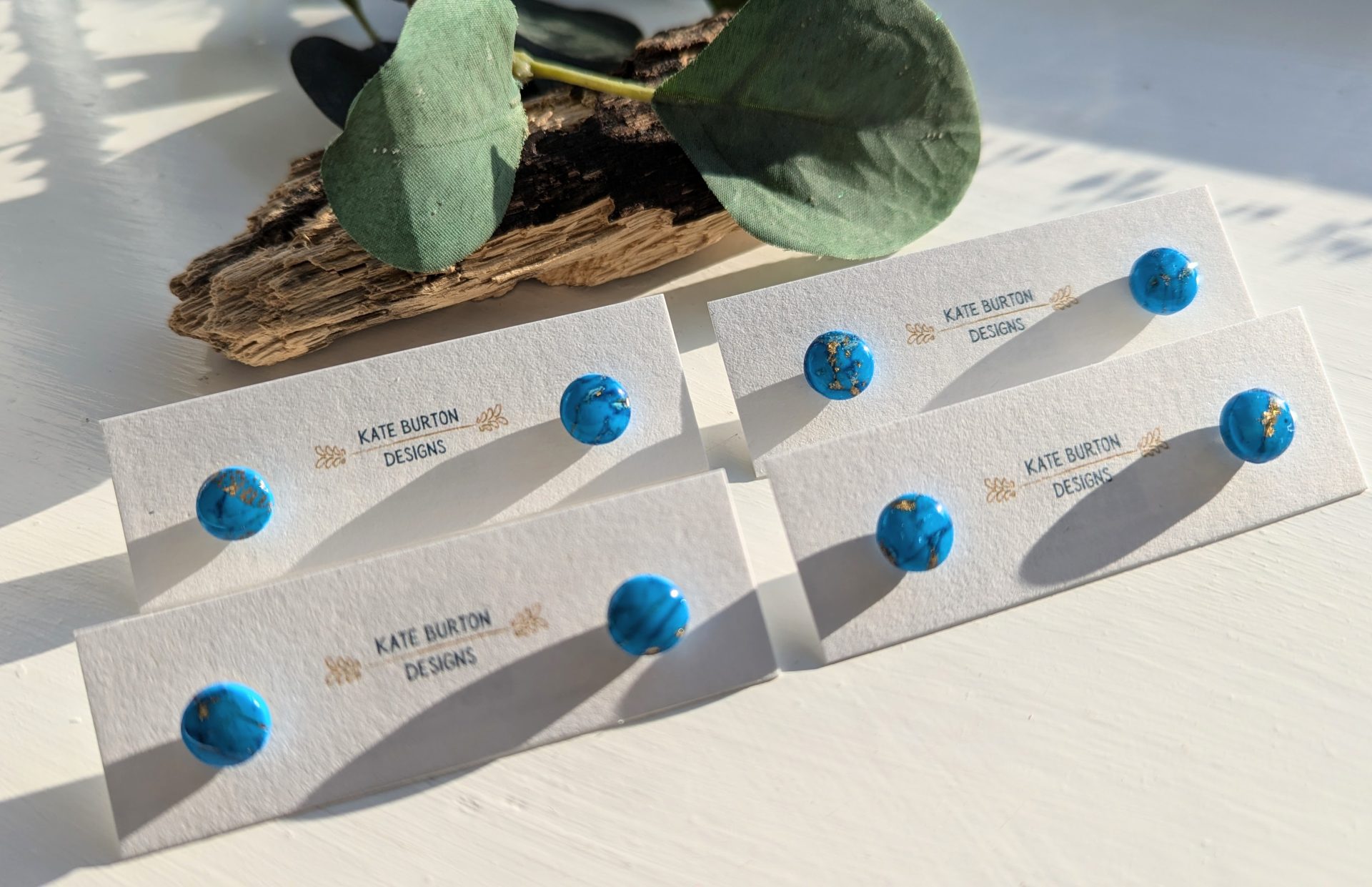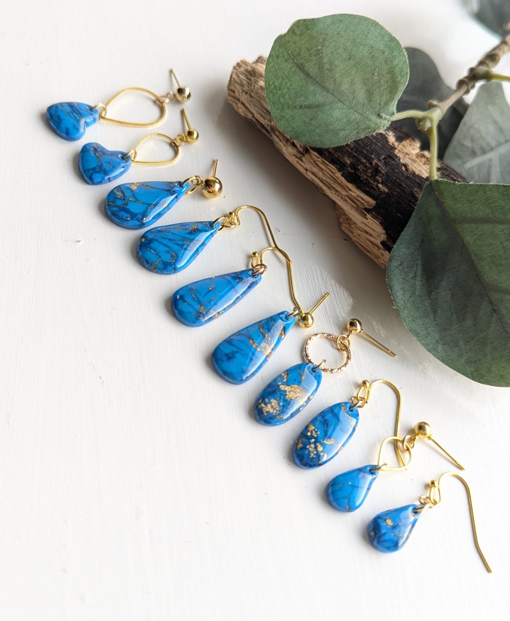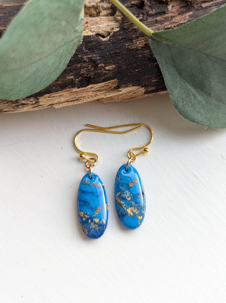 Turquoise Marble Earrings - Very pretty blue and gold marble effect earrings, the perfect accessory for every day. Gold leaf is mixed in with the clay to create the marble effect.