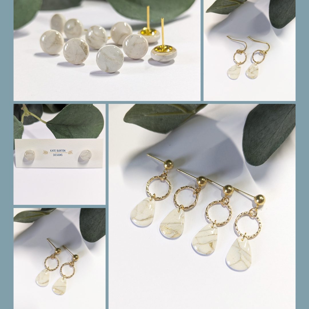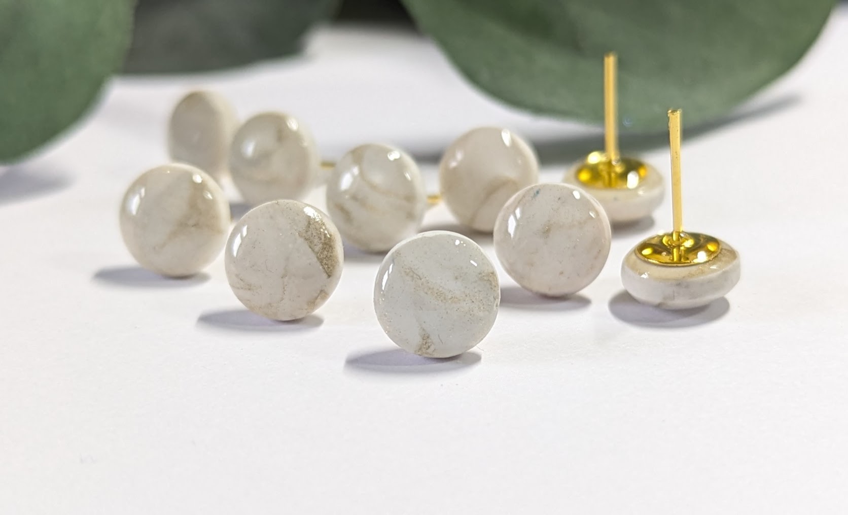White Marble Earrings Collection - Very pretty and subtle white marble effect earrings, the perfect accessory for every day, summer, special occasions, weddings. I've created these using white clay with gold mica powder. Delicate and stylish.
